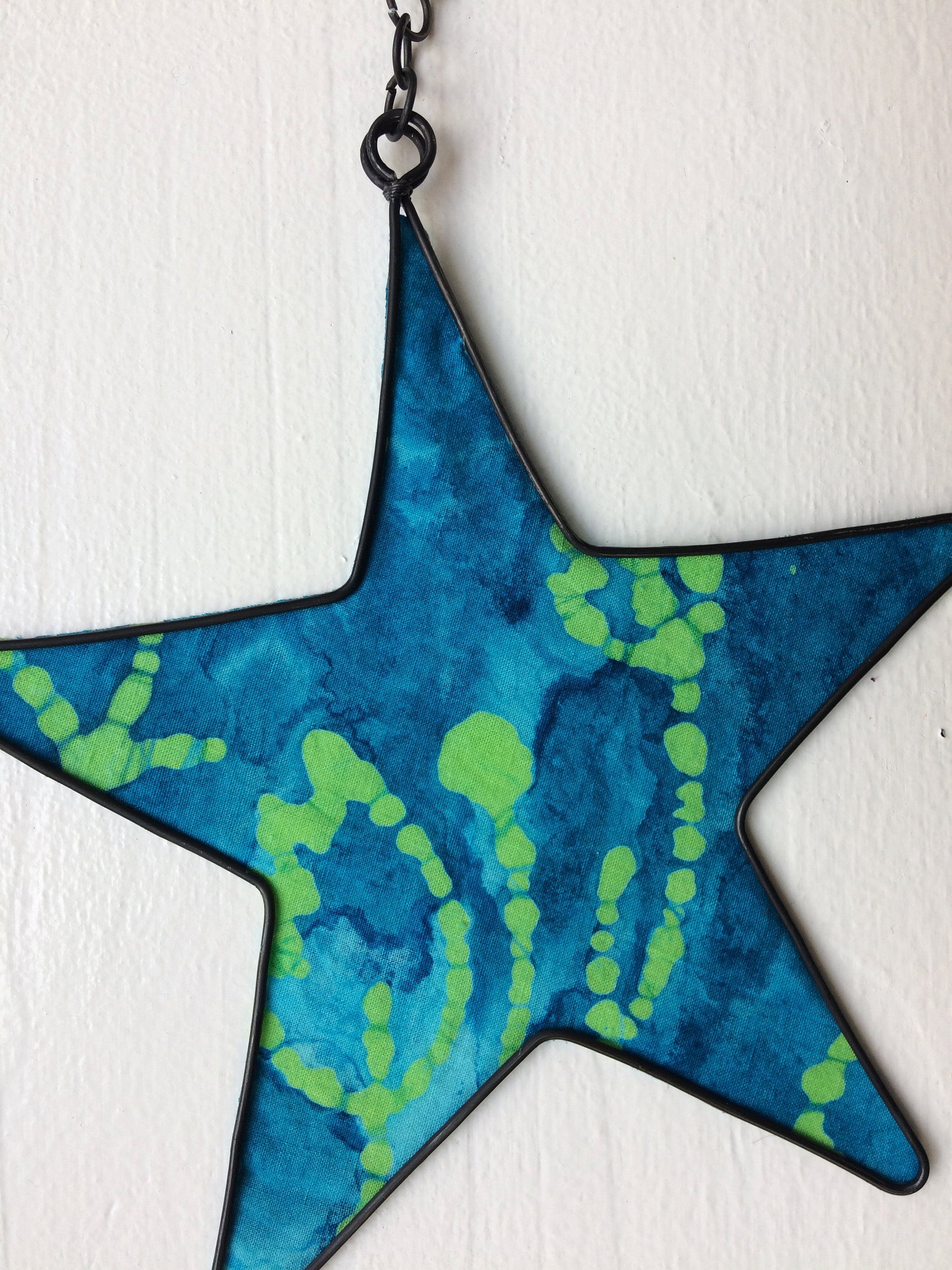 Etoile fil de fer et tissu coton, élément décoratif à suspendre, décoration murale en fil de fer recuit, tissu décoration d'intérieur, noël