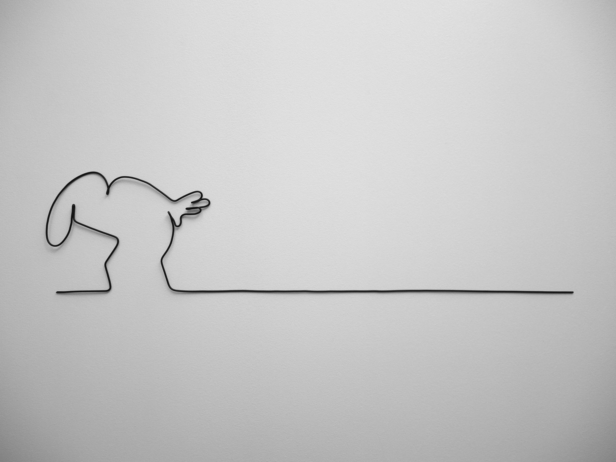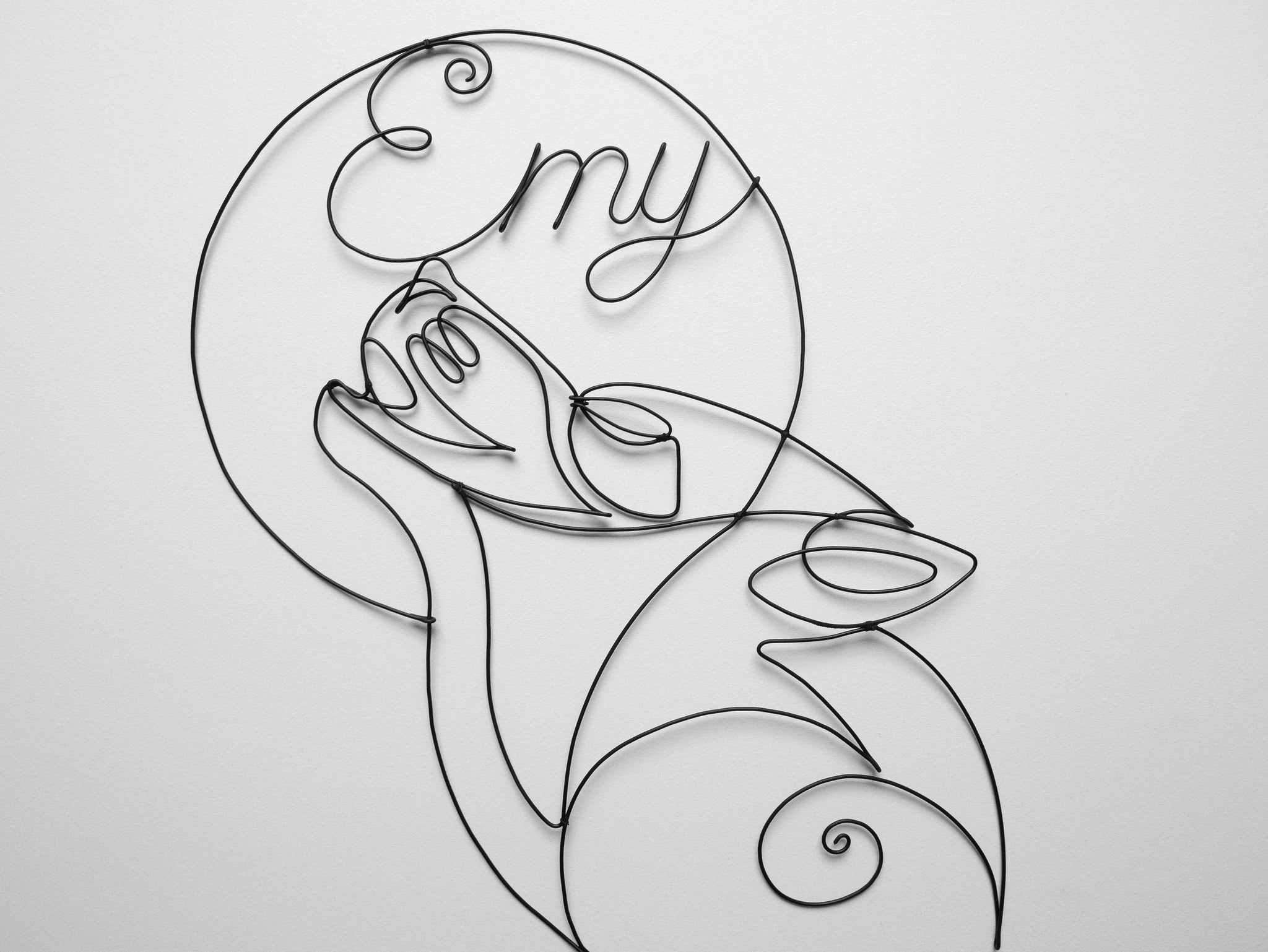 Inspiration Parodie La Linea en fil de fer recuit, sculpture fil de fer, décoration murale, déco année 70, citation fil de fer, écriture