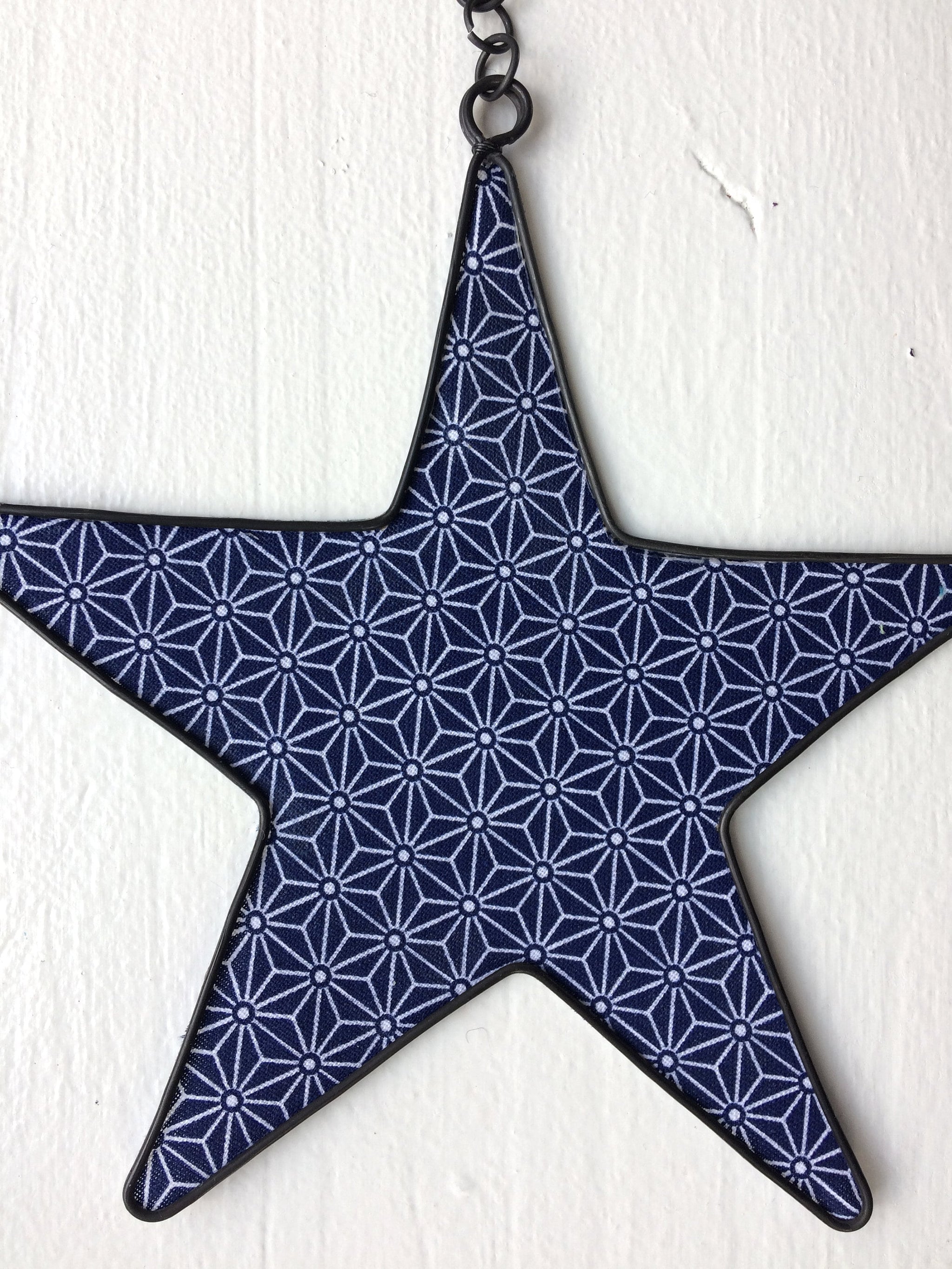 Noël étoile en fil de fer recuit, tissu coton motif japonais, élément décoratif à suspendre, décoration murale, décoration d'intérieur, bleu