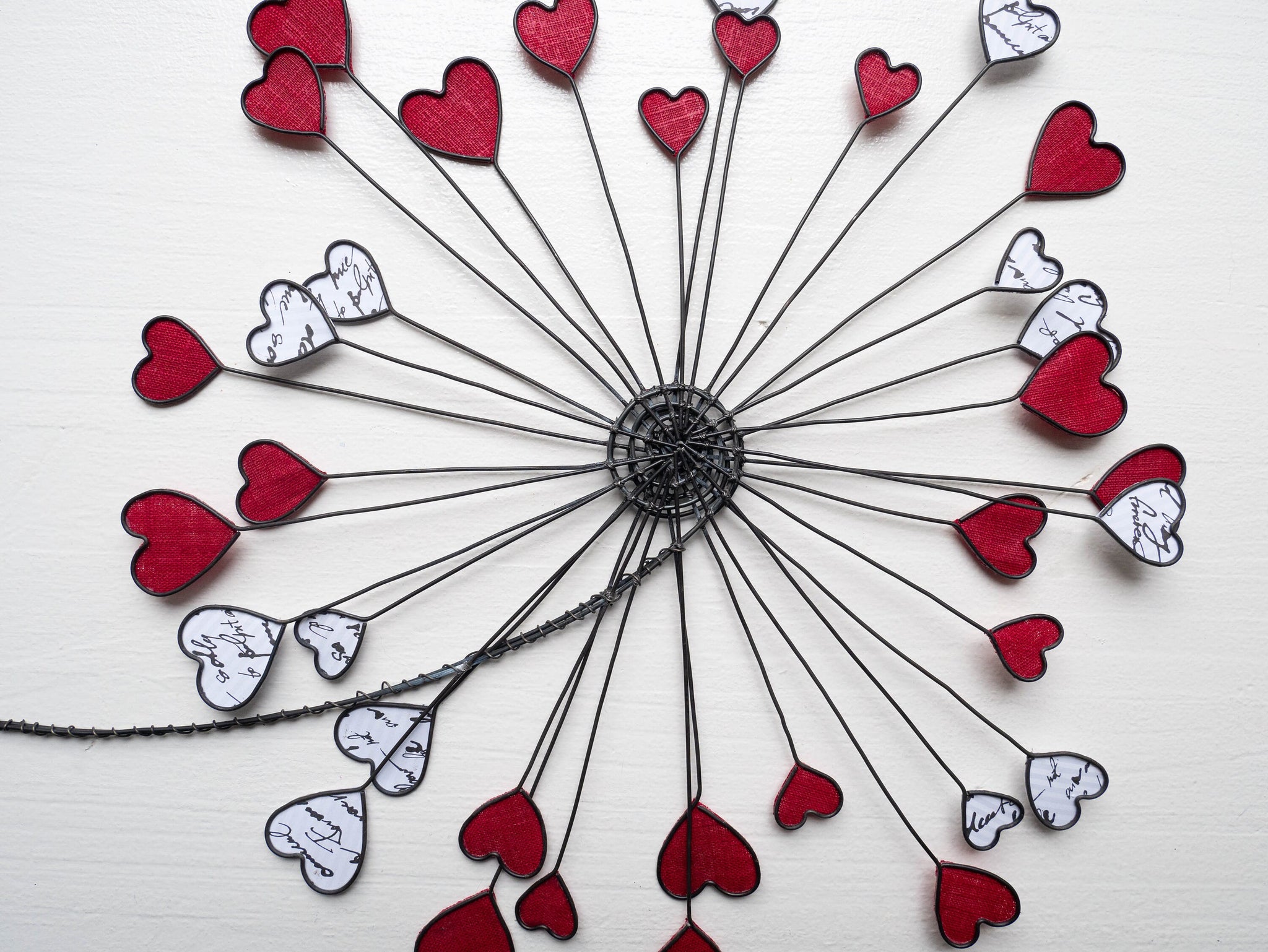 Fleur, rose, pissenlit en fil de fer recuit, décoration murale, métal et tissu, cadeau décoration d'intérieur avec coeur, rouge, nature