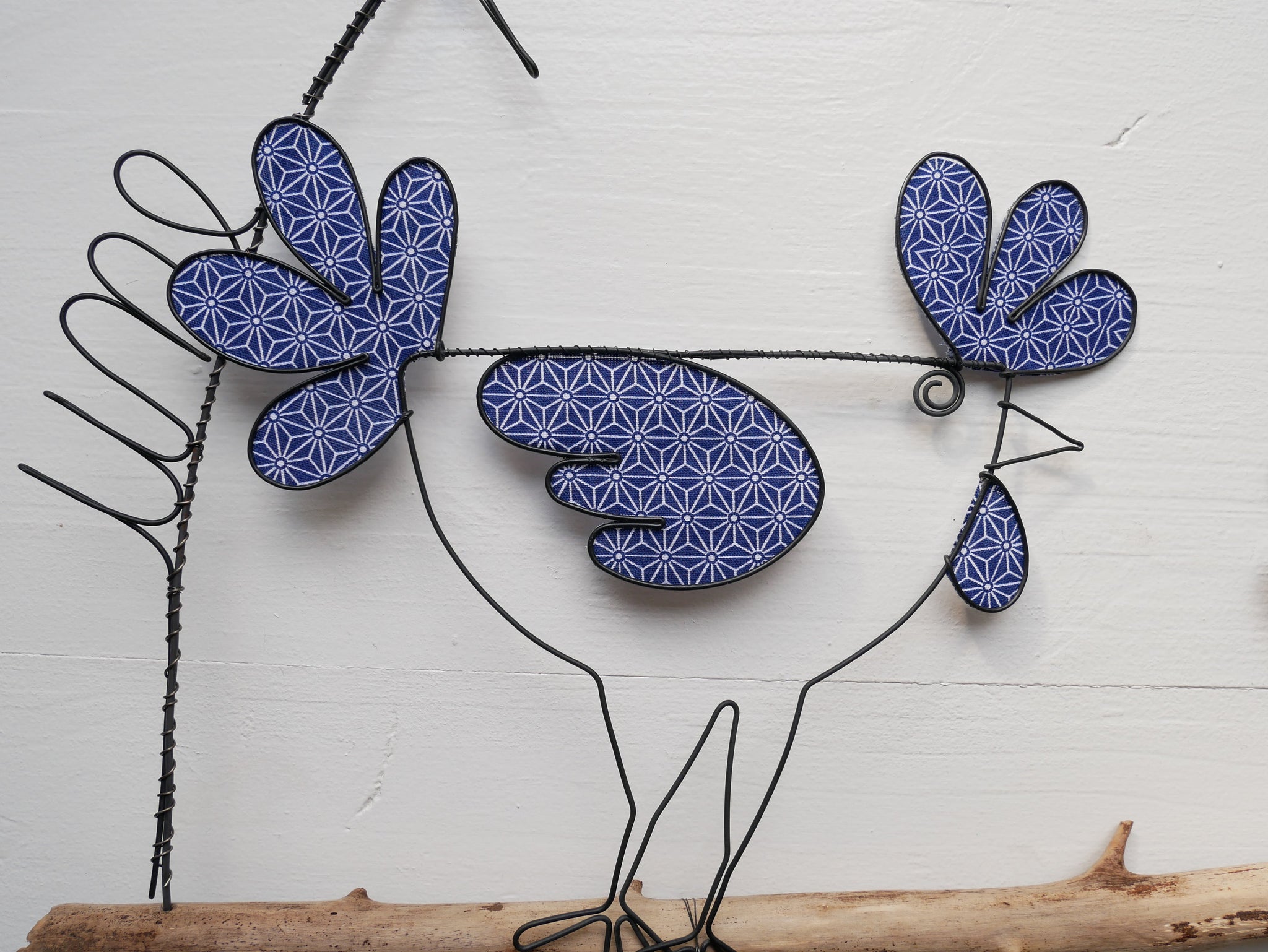 Décoration murale poule métal avec du bois flotté et fil de fer, une poule sur un mur, décoration campagne chic, bohème rétro, nature wire