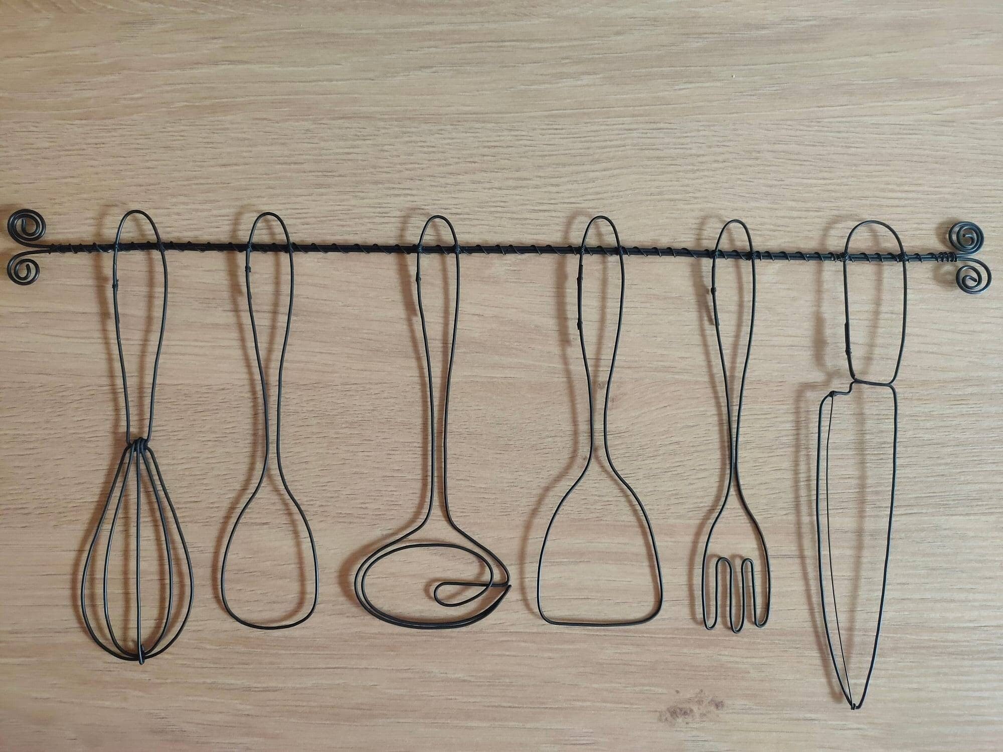 Décoration murale " Set d'ustensiles de cuisine " véritable fil de fer recuit, Restaurant, décoration murale cuisine, sculpture fil de fer