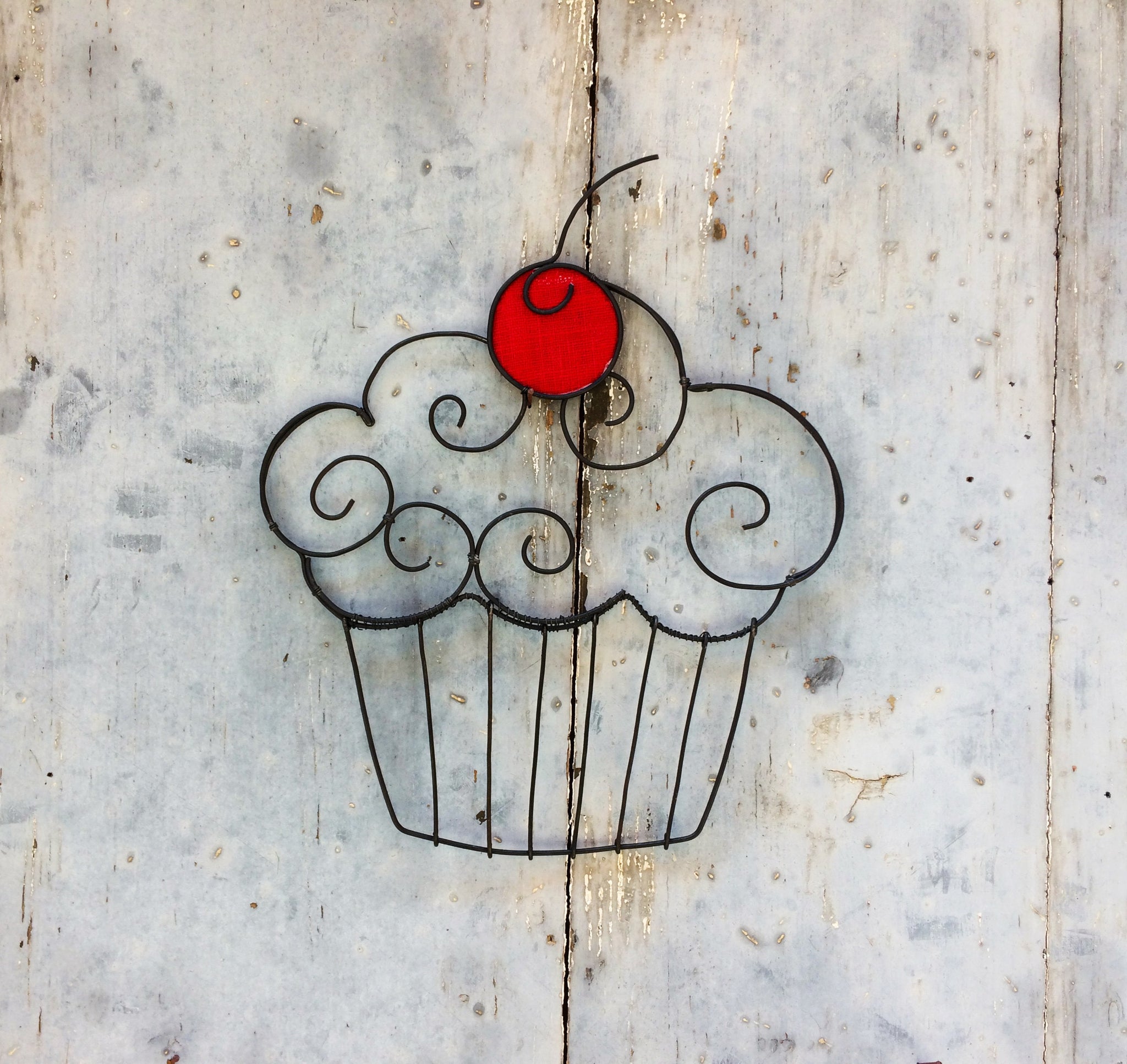 Cup cake en fil de fer recuit, décoration murale cuisine, décoration métallique, art food, gâteau, pâtisserie, cerise, french kitchen wire