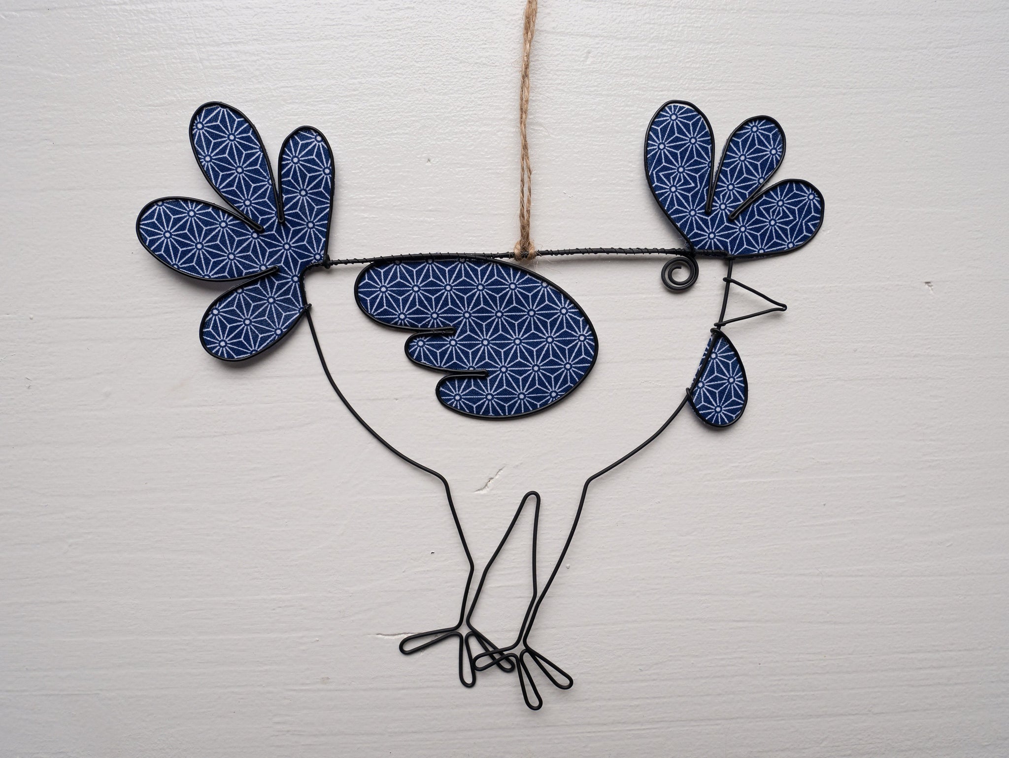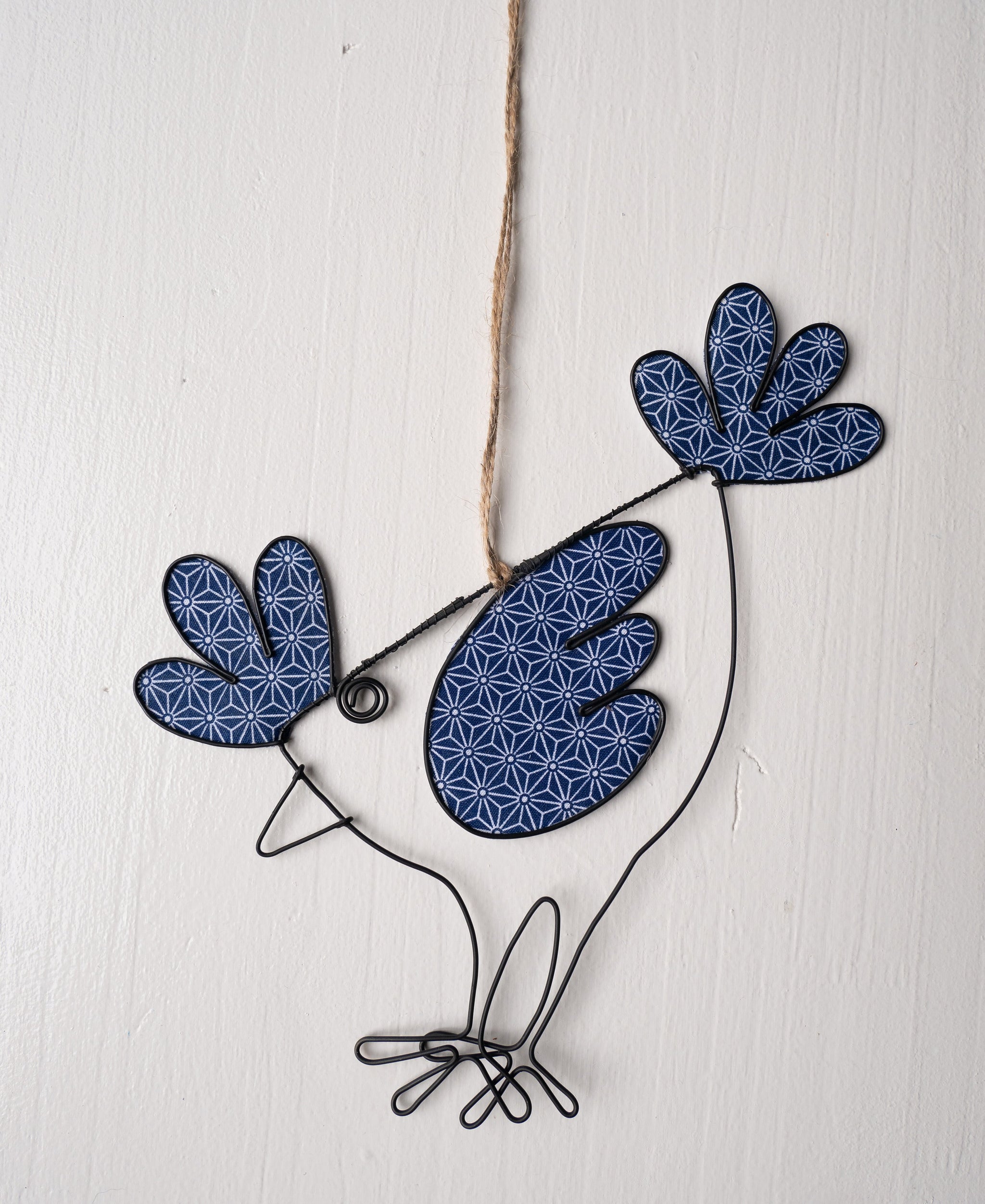 Poule coq décorative tissu à suspendre, décoration murale en fil de fer recuit, cadeau décoration d'intérieur, nature, poulette, campagne