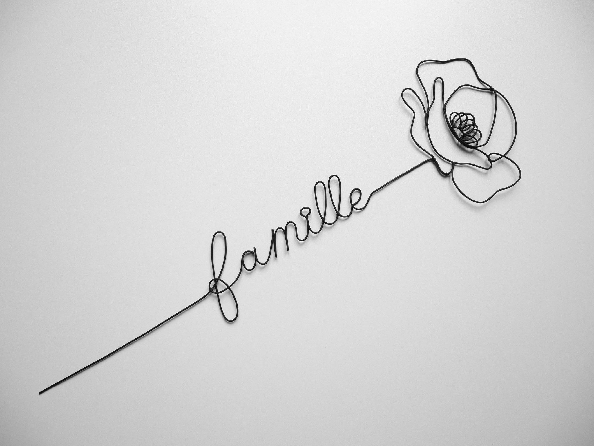 Fleur fil de fer coquelicot prénom fil de fer personnalisable, mot personnalisable avec fleur, décoration murale photo de famille