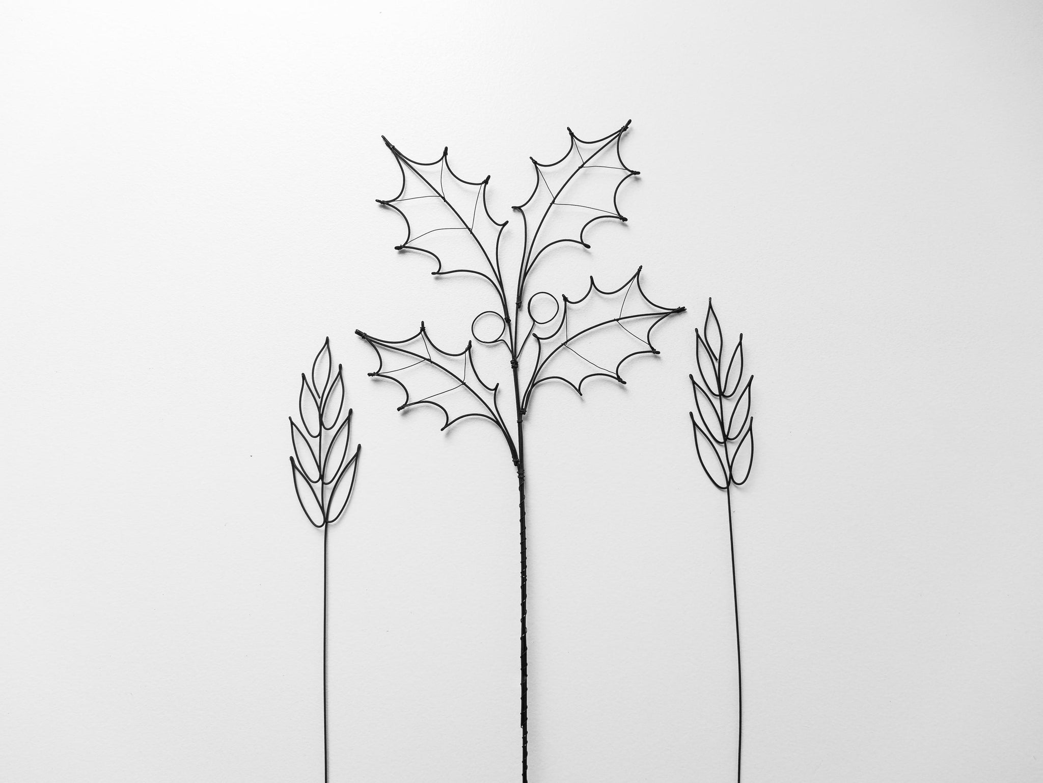 Bouquet de 3 fleurs éternelles en fil de fer recuit : Houx et Brindilles, Déco florale moderne, décoration d'intérieur, cadeau