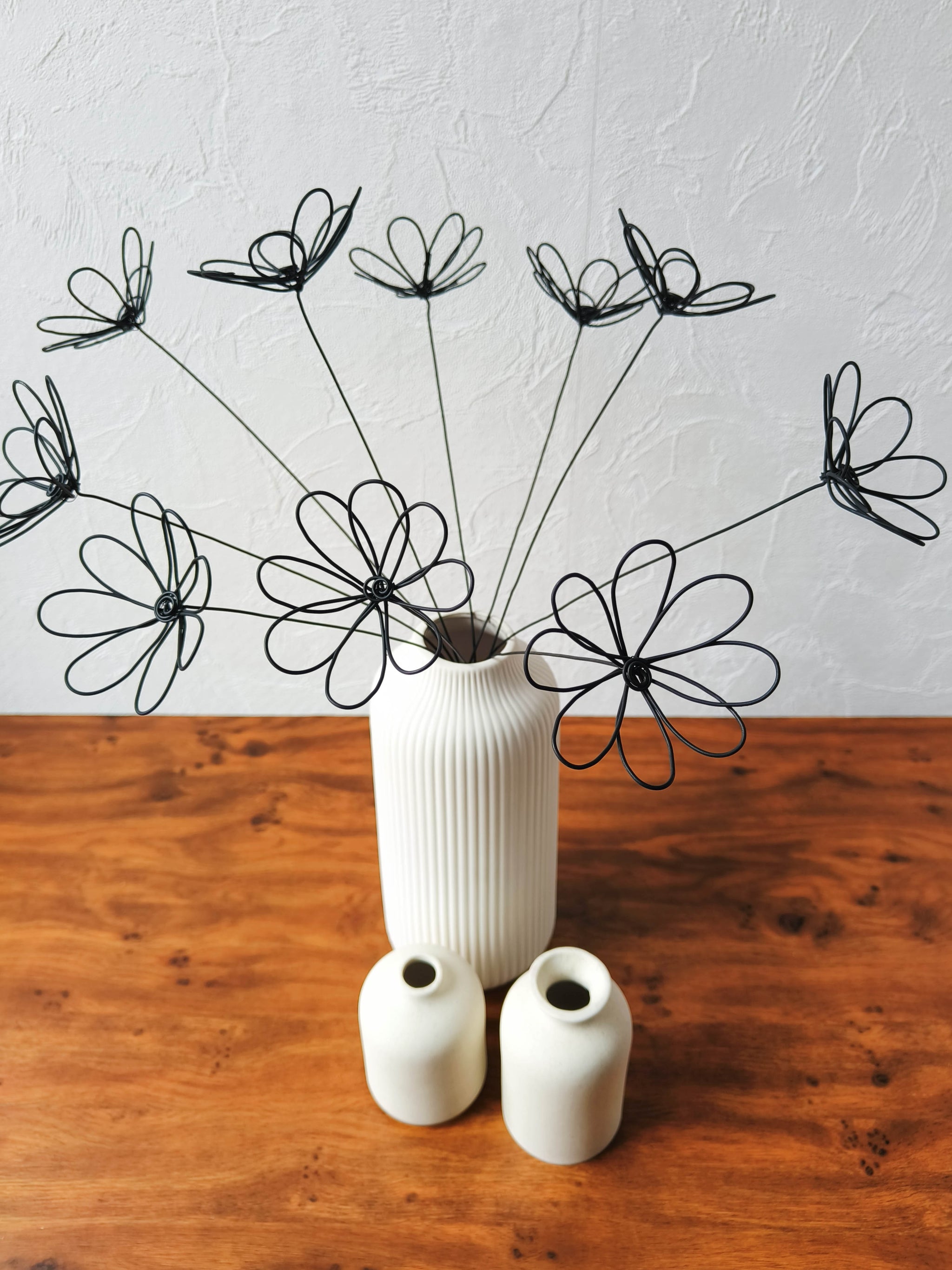Bouquet 10 fleurs 3D en fleur fil de fer recuit, fleur artificielle, décoration floral, bohème nature, coquelicot, marguerite, pâquerette
