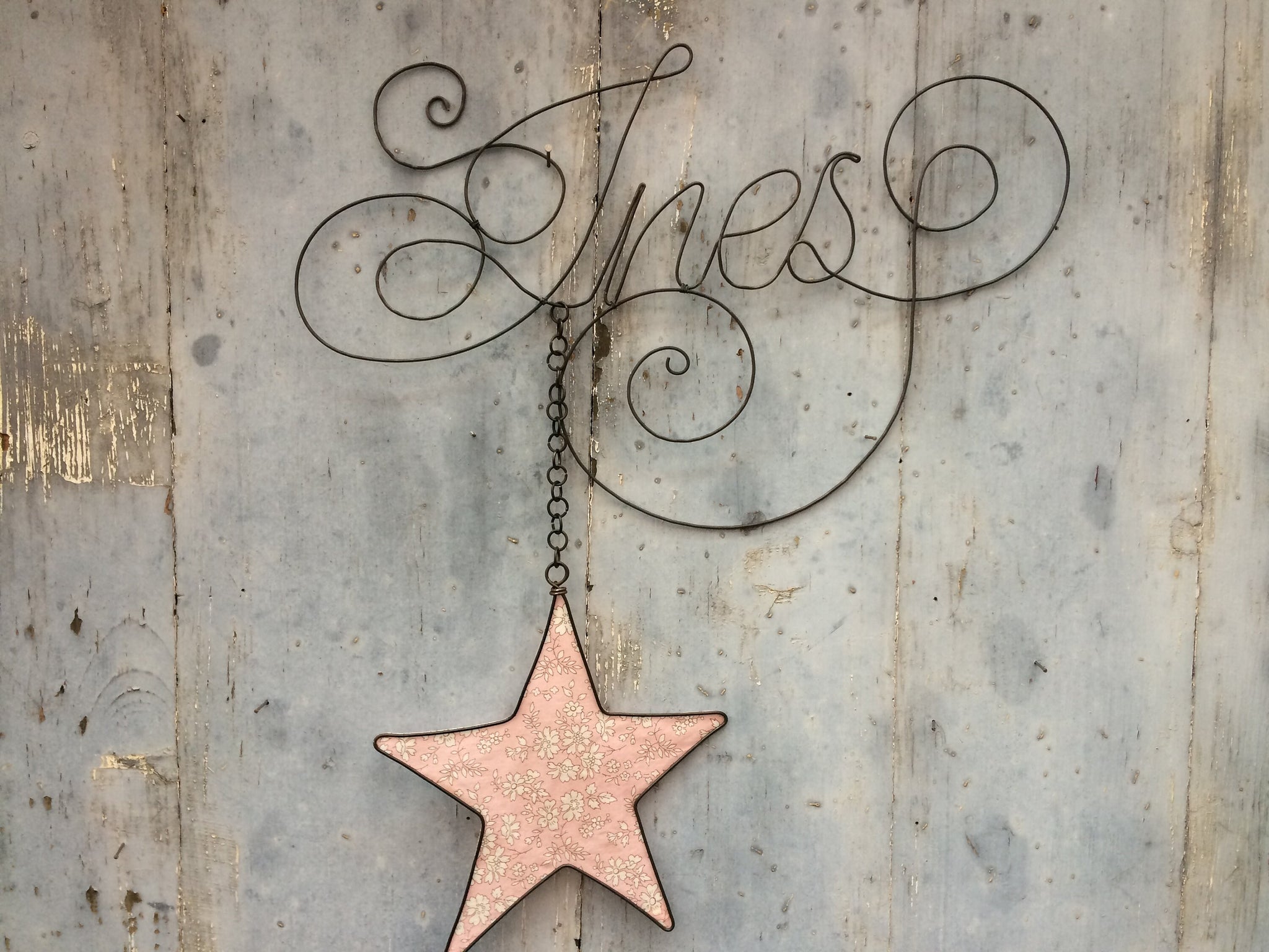 Prénom fil de fer, prénom personnalisable avec étoile, Ines, décoration murale chambre enfant, plaque de porte prénom, cadeau de naissance