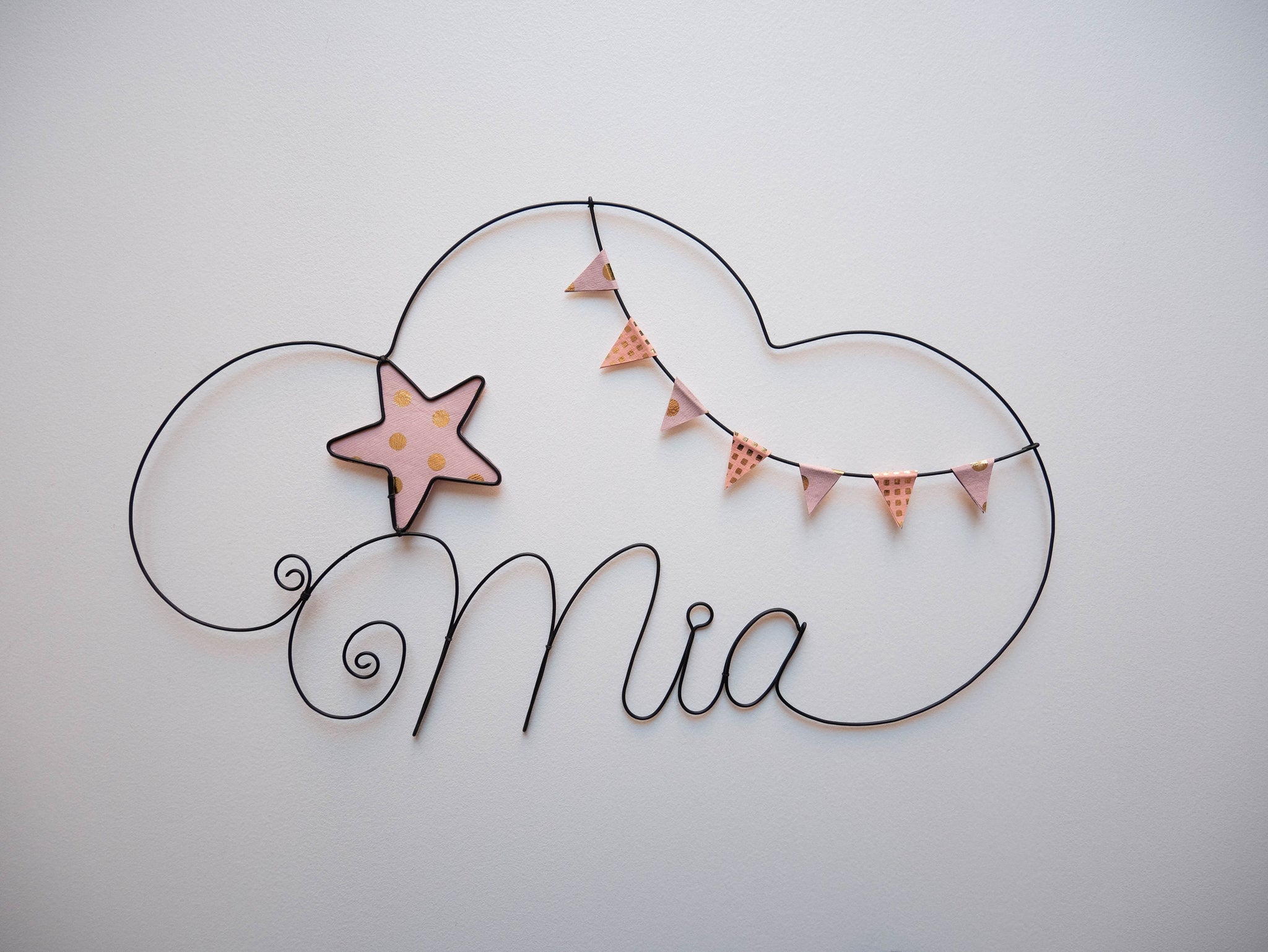 Nuage prénom personnalisable fil de fer, décoration murale pour chambre d'enfant, plaque de porte prénom, cadeau de naissance,
