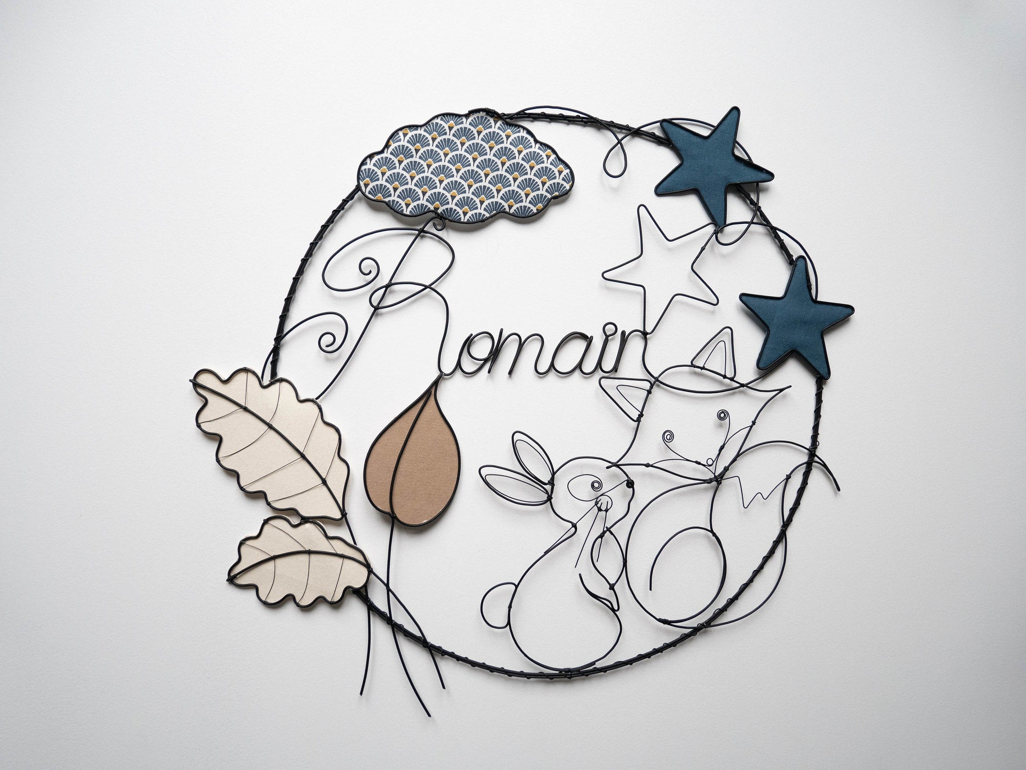 Prénom fil de fer personnalisable, prénom esprit féérique, prénom bébé nature, plaque de porte prénom, idée cadeau naissance personnalisable