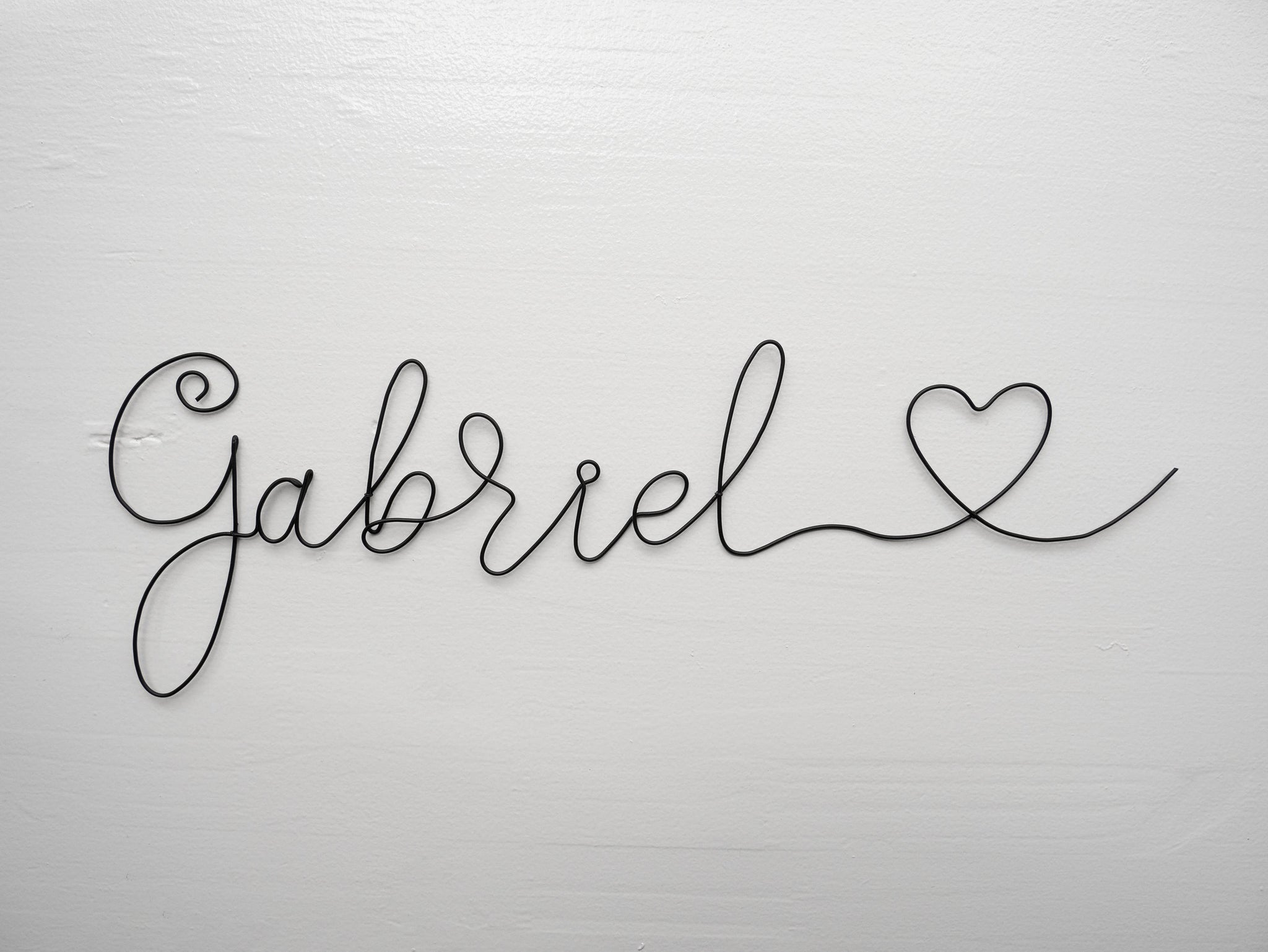 Prénom fil de fer recuit, prénom personnalisable, Gabriel avec coeur, prénom bébé , décoration murale, chambre d'enfant, plaque de porte