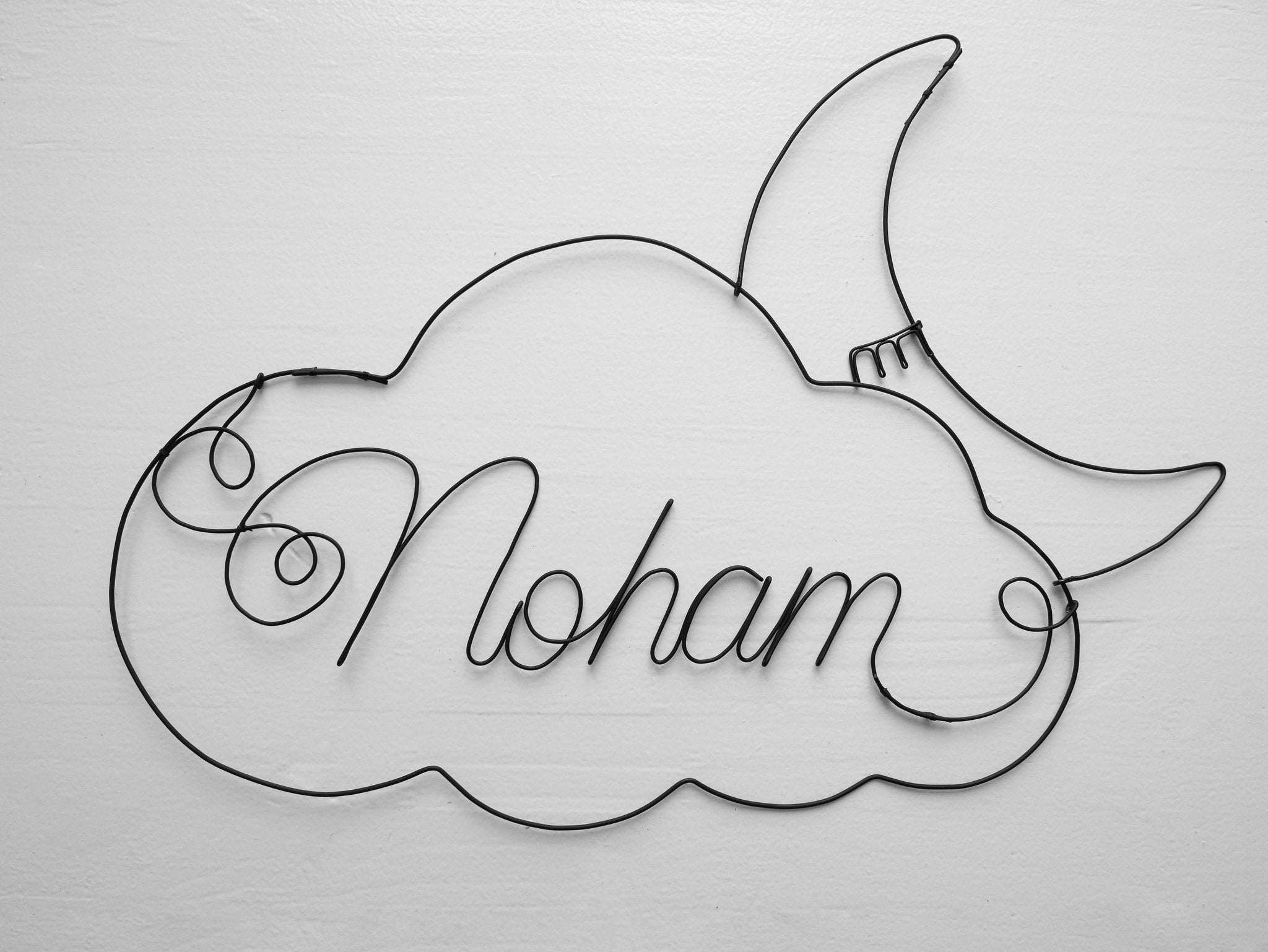 Prénom fil de fer, prénom personnalisable, prénom nuage, prénom étoile, prénom lune, décoration chambre d'enfant, cadeau, plaque de porte