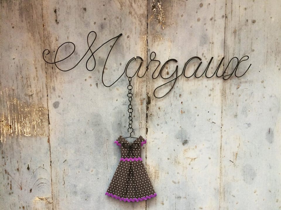 Anpassbarer Kinder-Vorname aus Draht, Margaux-Vorname, Origami-Kleid, Wanddekoration für Kinderzimmer, anpassbares Geschenk