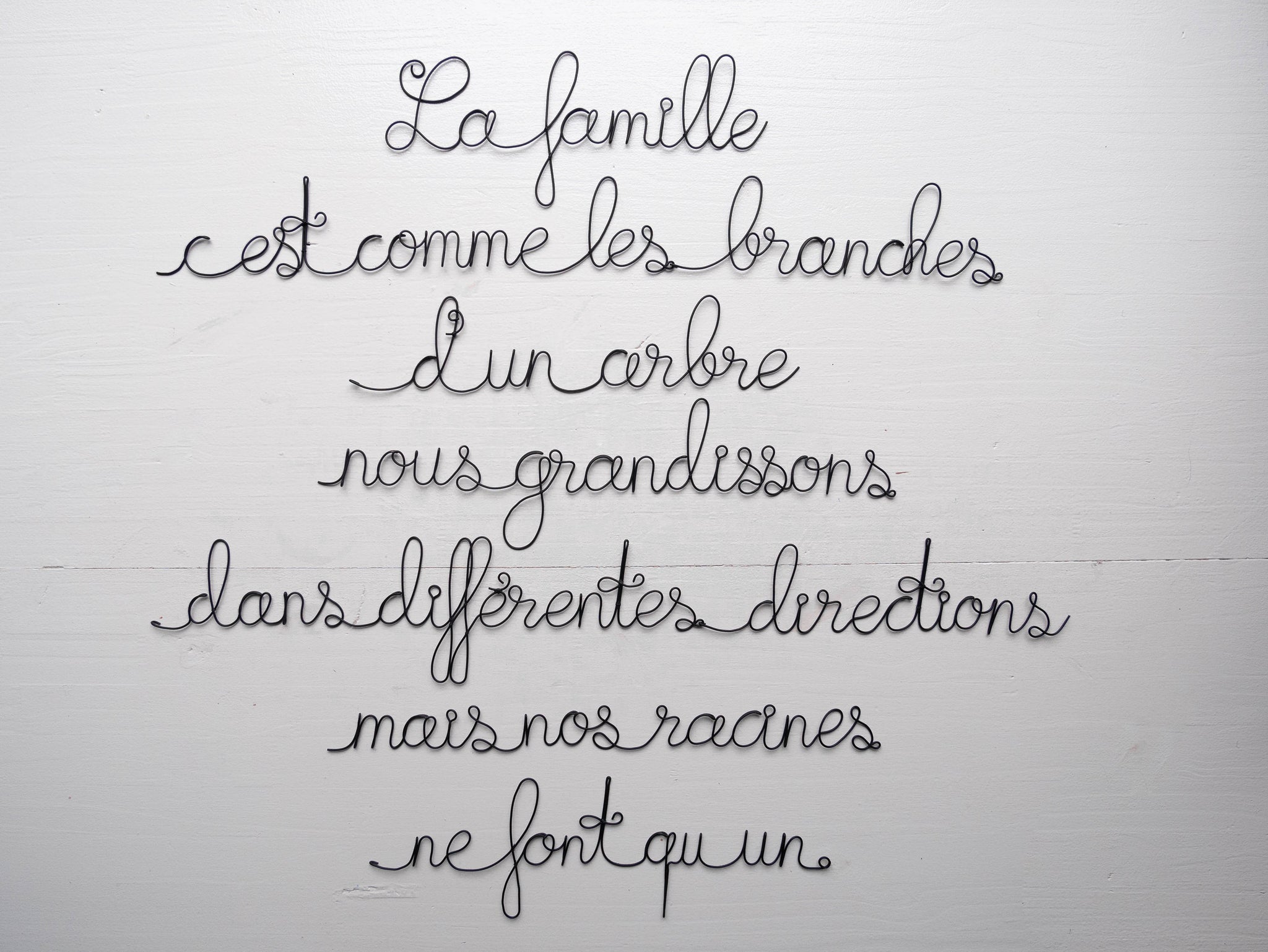 Zitat Familiensatz aus Draht, Drahtschrift, Nachricht, Drahtsatz, Drahtzitat, Drahtwanddekoration