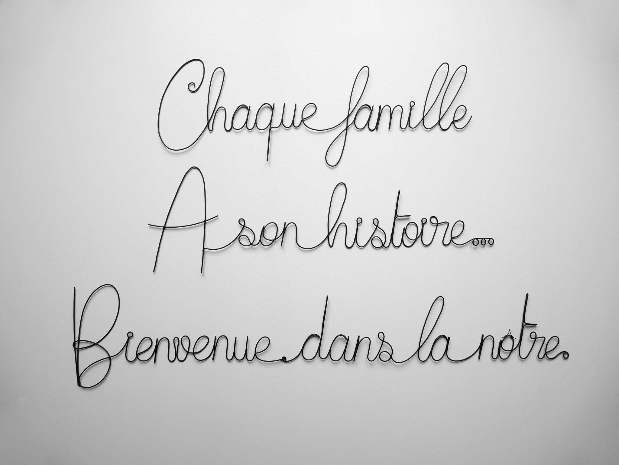 Familie Drahtwandzitat, Glücksbotschaft, Drahtsatz, Drahtzitat, Drahtwanddekoration, Skulptur