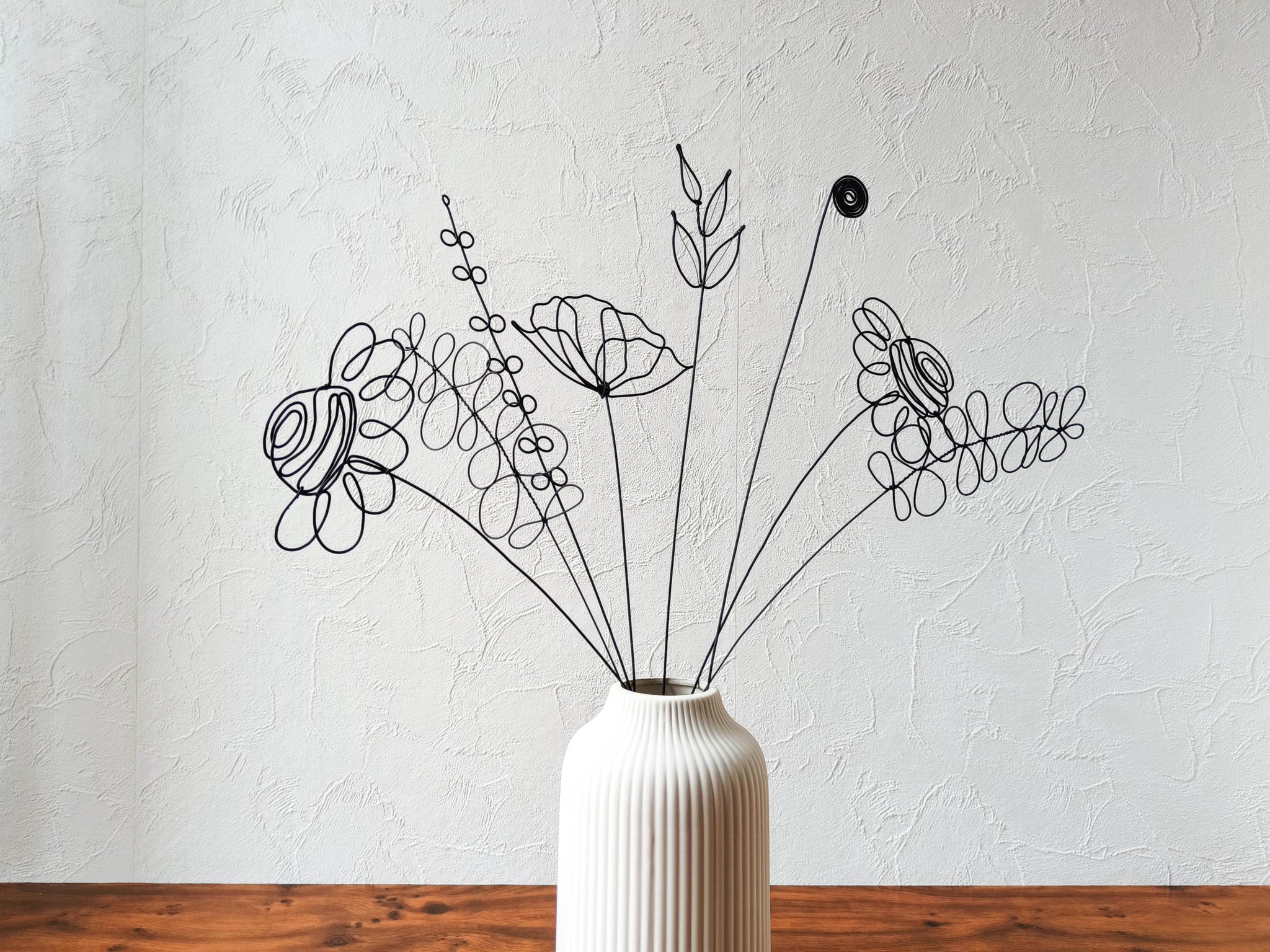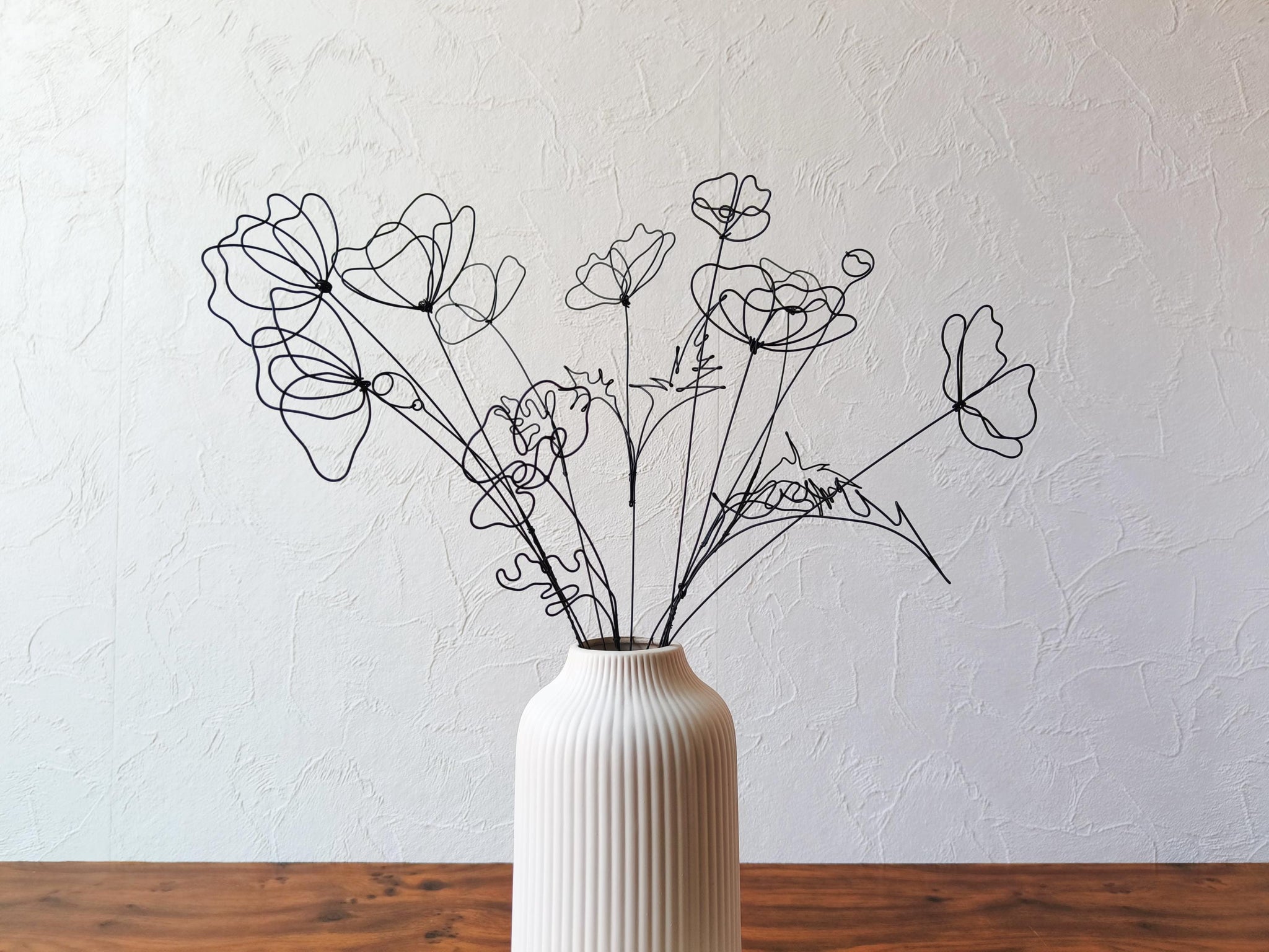 Bouquet de 11 fleurs en véritable fil de fer recuit coquelicot sauvage, décoration floral fil de fer, déco bohème nature, cadeau maitresse