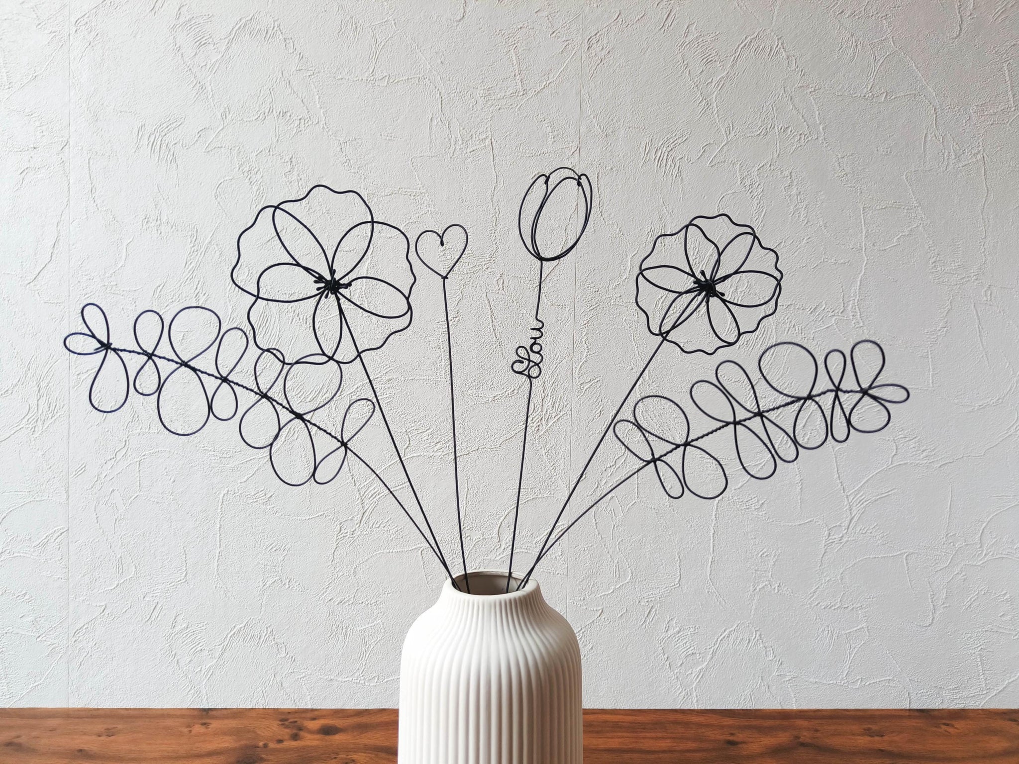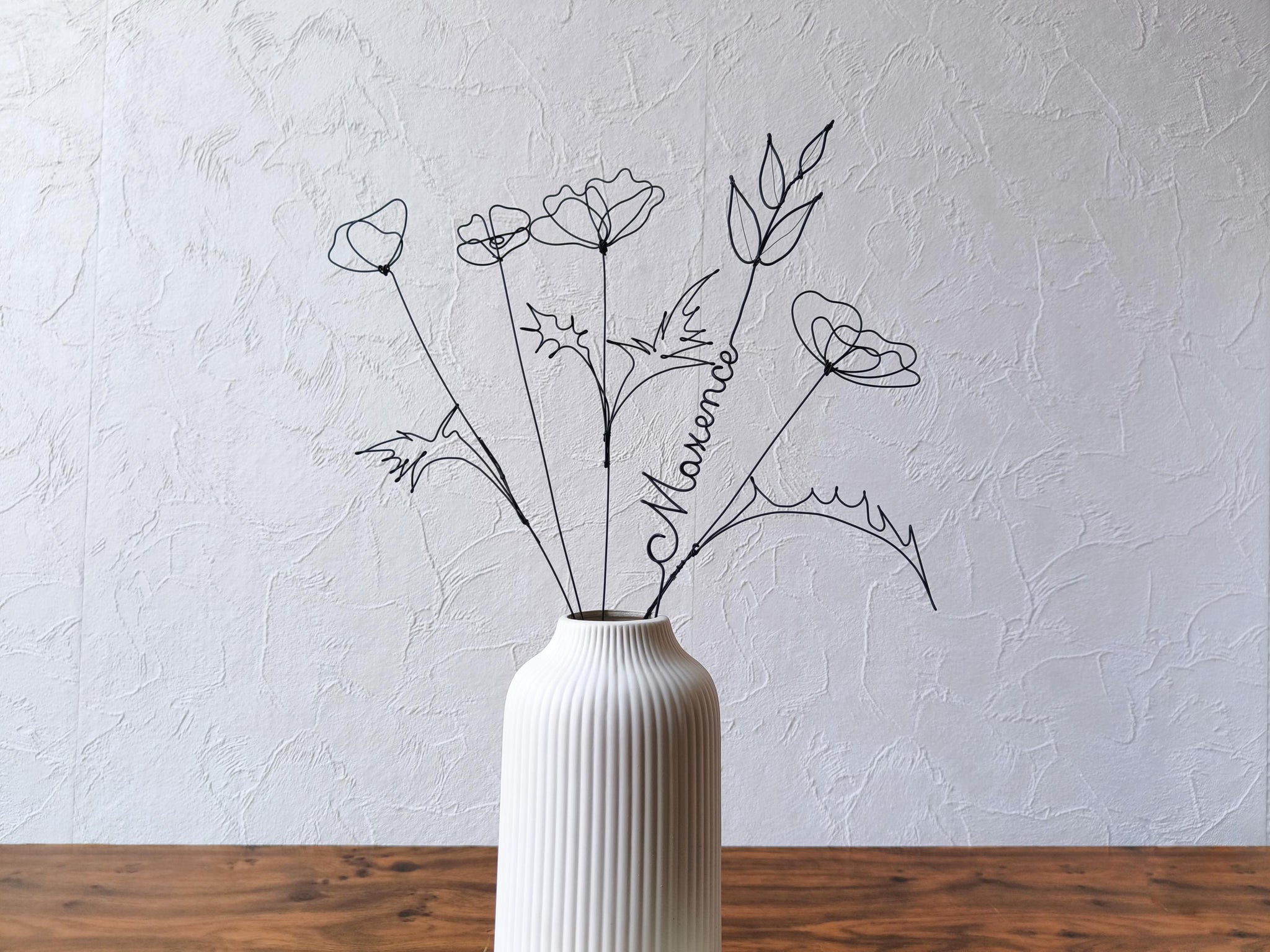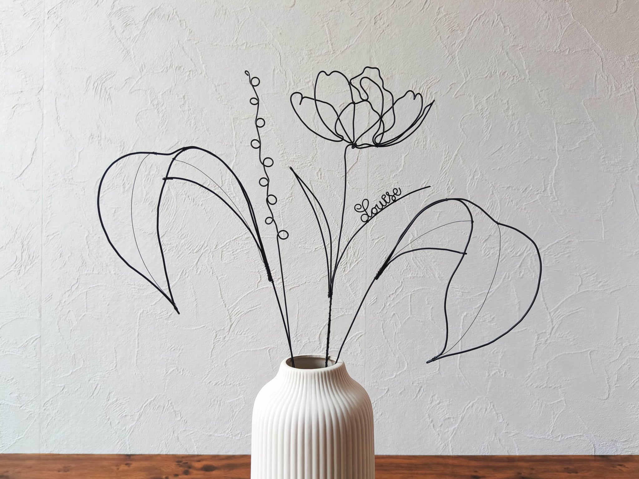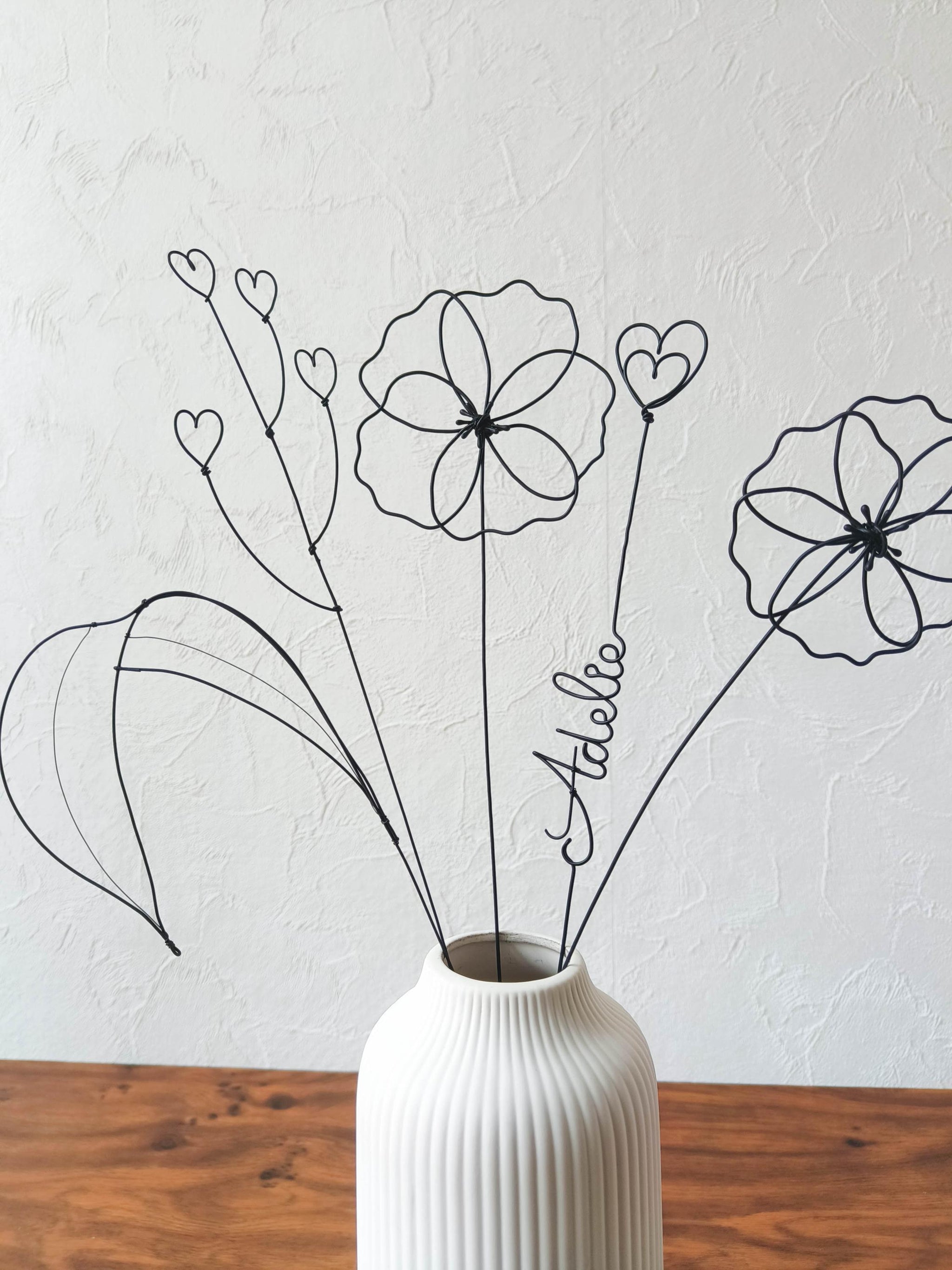 Fleurs en véritable fil de fer, bouquet de fleurs personnalisées, déco de table fil de fer, prénoms personnalisés, garantie à vie, cadeau