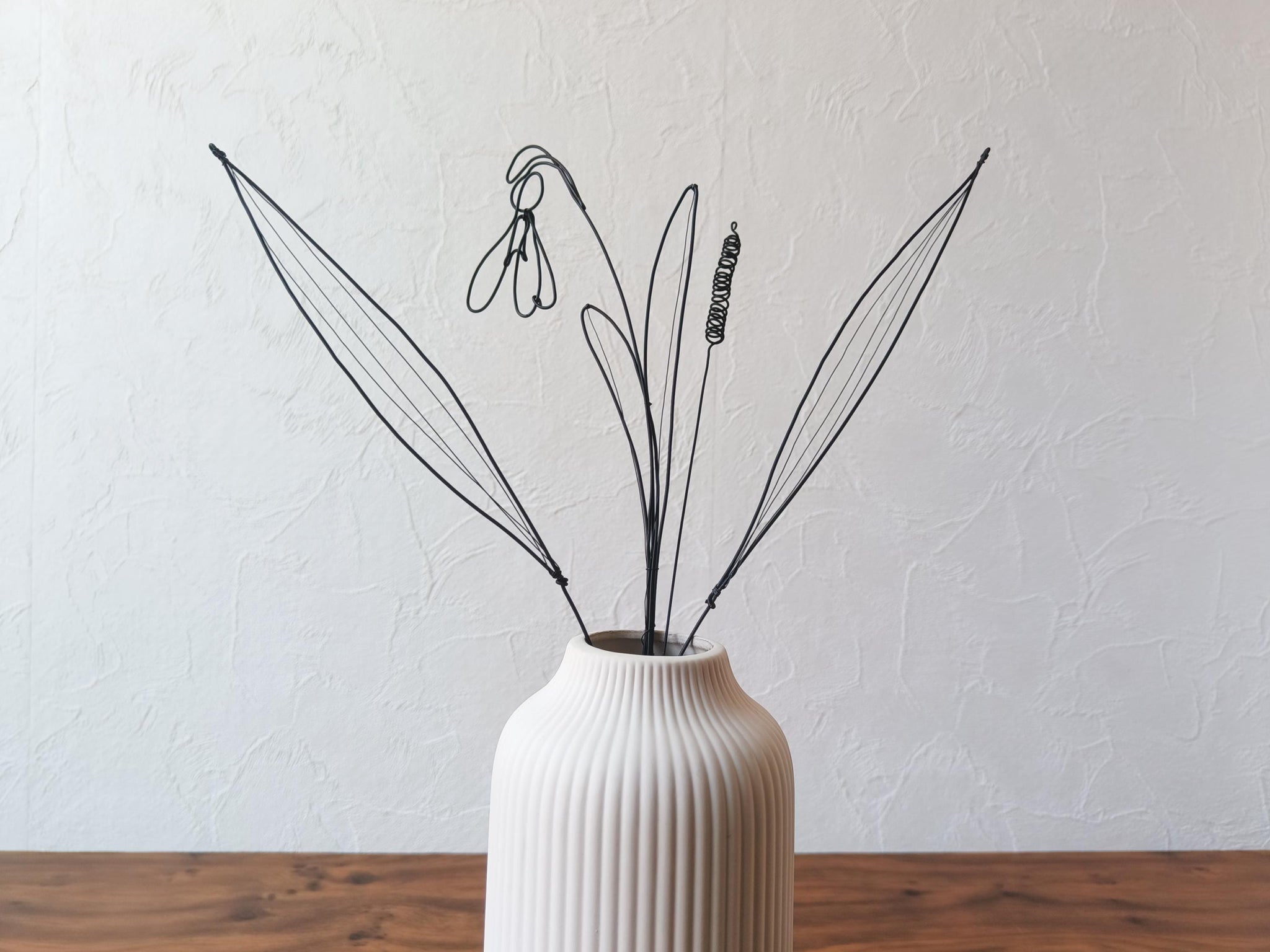 Bouquet de 4 tiges fleurs éternel en fil de fer recuit, Perce neige et herbes, feuilles, Déco floral moderne, décoration d'intérieur, table