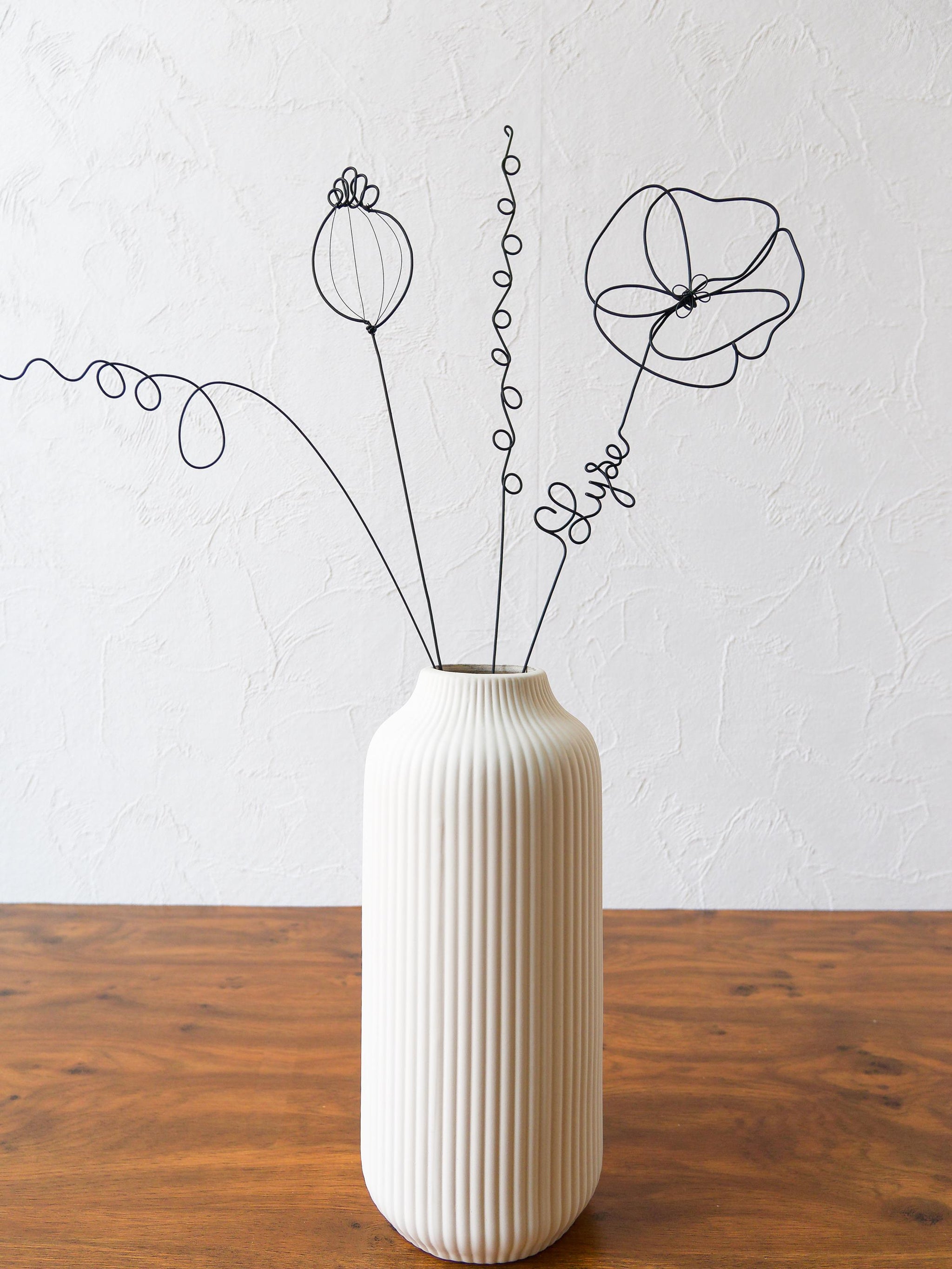 Fleurs en véritable fil de fer, bouquet de 5 fleurs personnalisées, déco de table fil de fer, prénoms personnalisés, coquelicot, cadeau