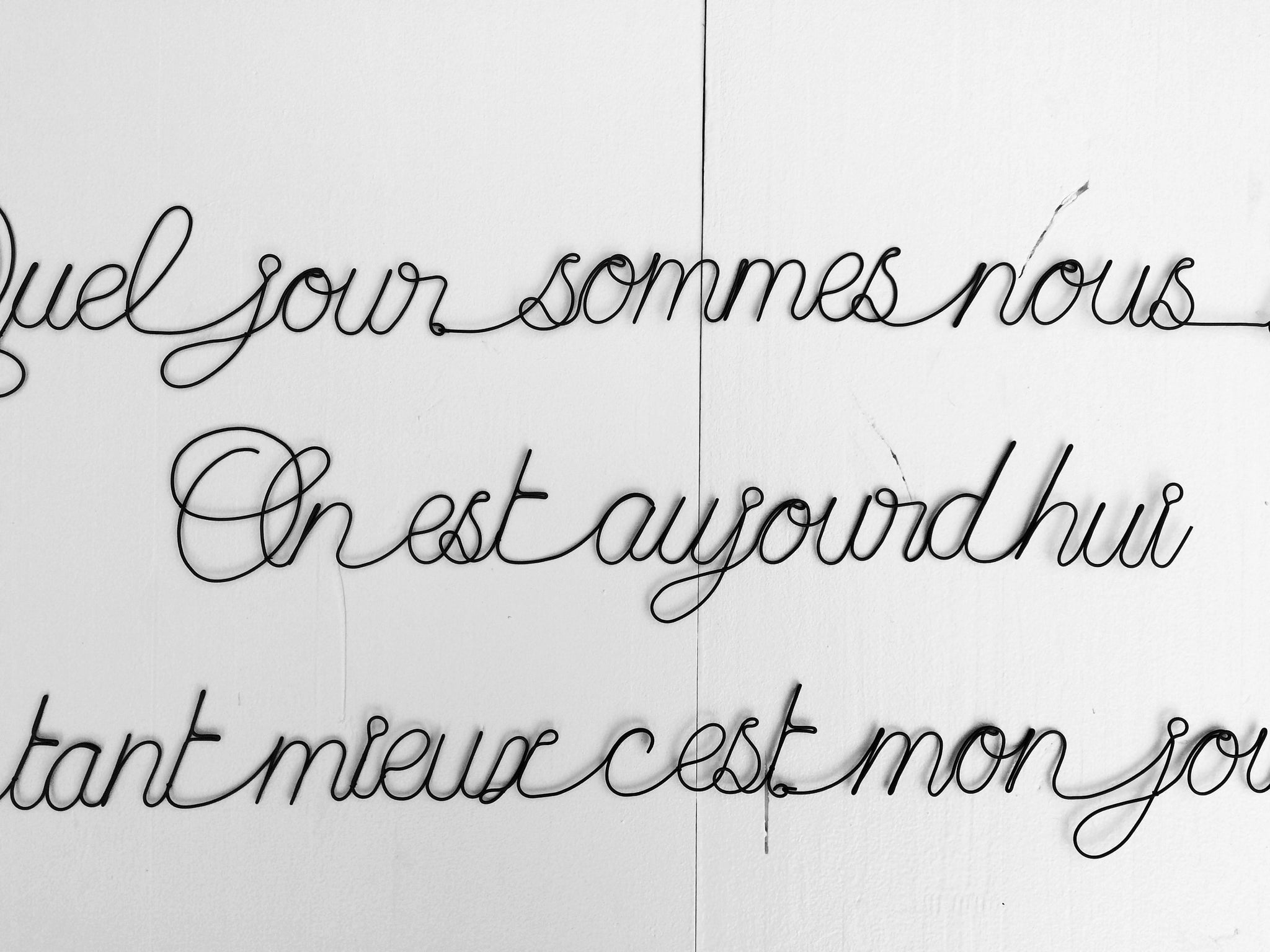 Enjoy, wall phrase in annealed wire, writing, quote, sculpture in annealed wire, wall decoration, door plate, stickers