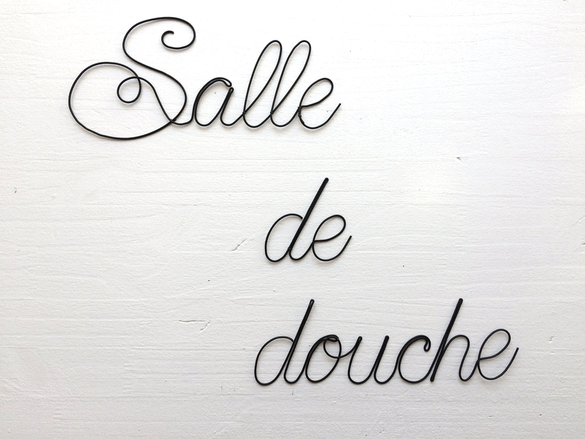 Shower room door plaque, bathroom word in annealed wire, customizable message, phrase, wire quote