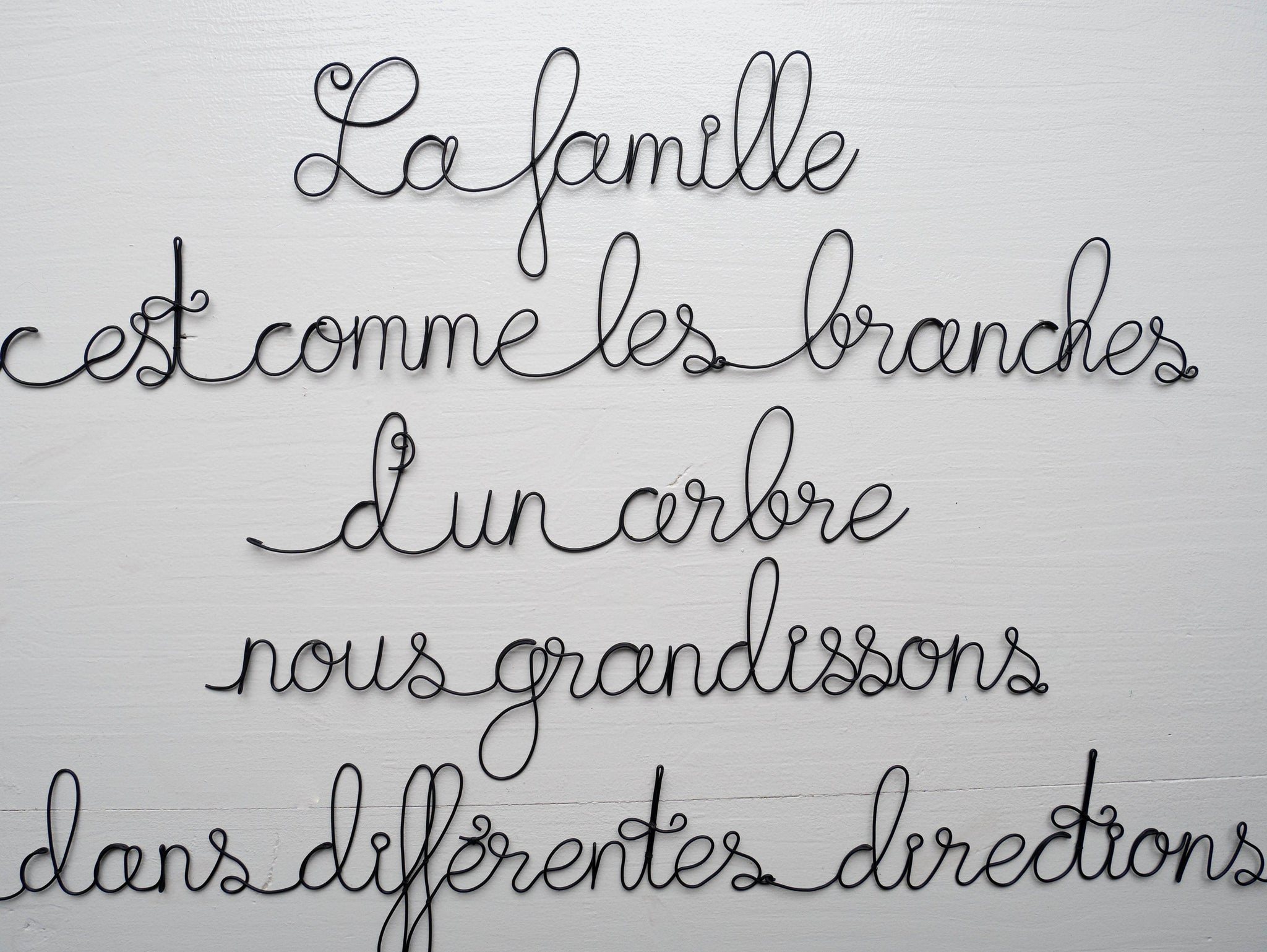 Quote family phrase in wire, wire writing, message, wire phrase, wire quote, wire wall decoration