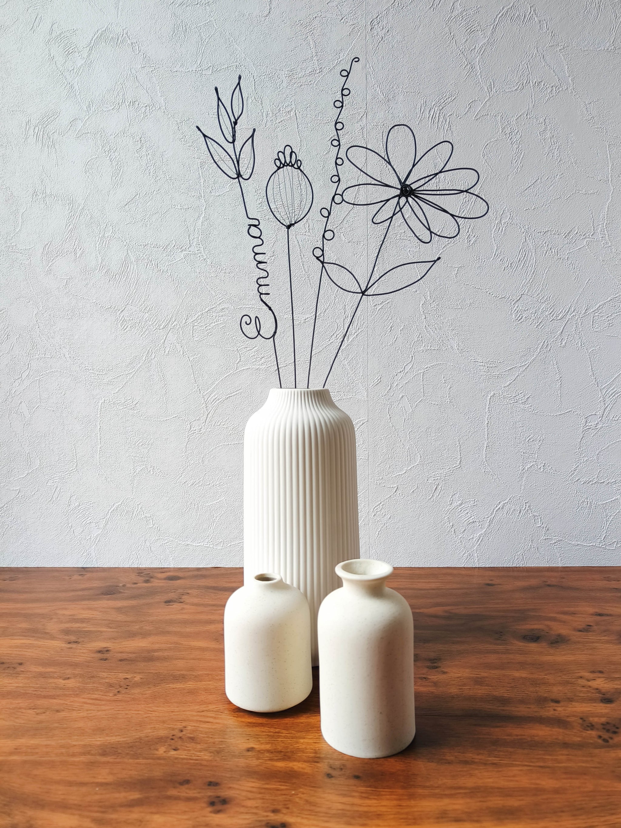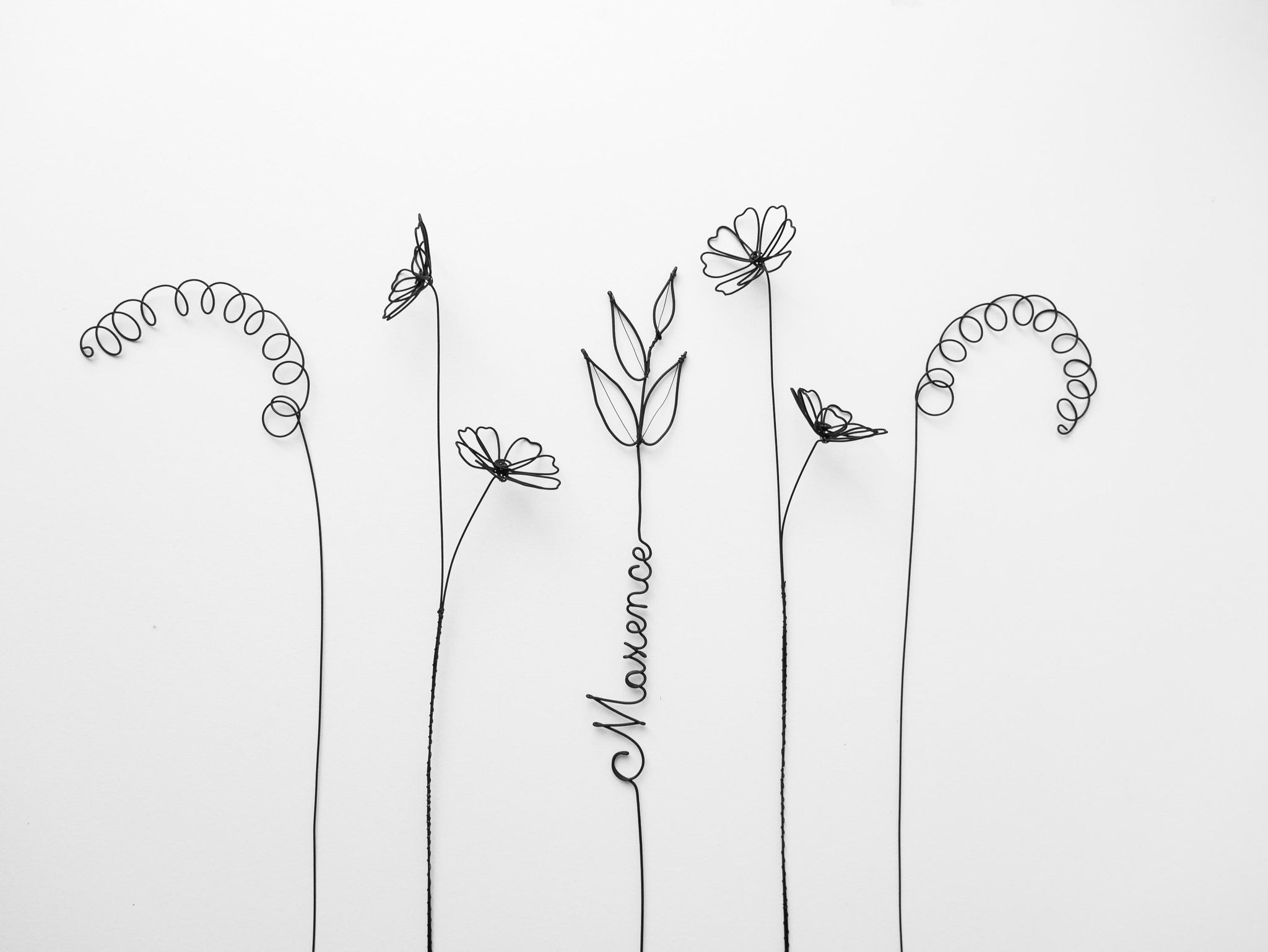 Fleurs en véritable fil de fer, bouquet de fleurs personnalisées, déco de table fil de fer, prénoms personnalisés, garantie à vie, cadeau