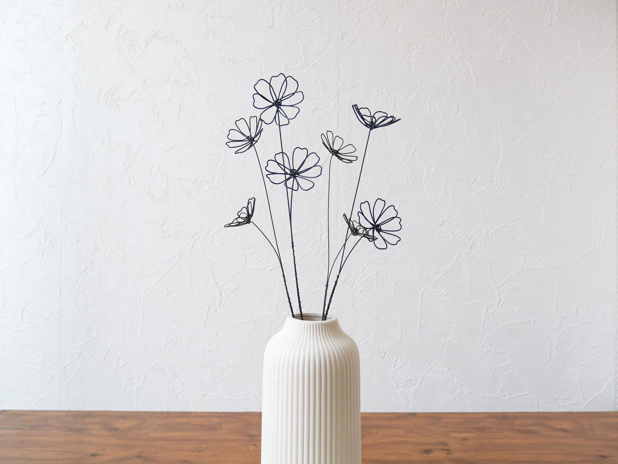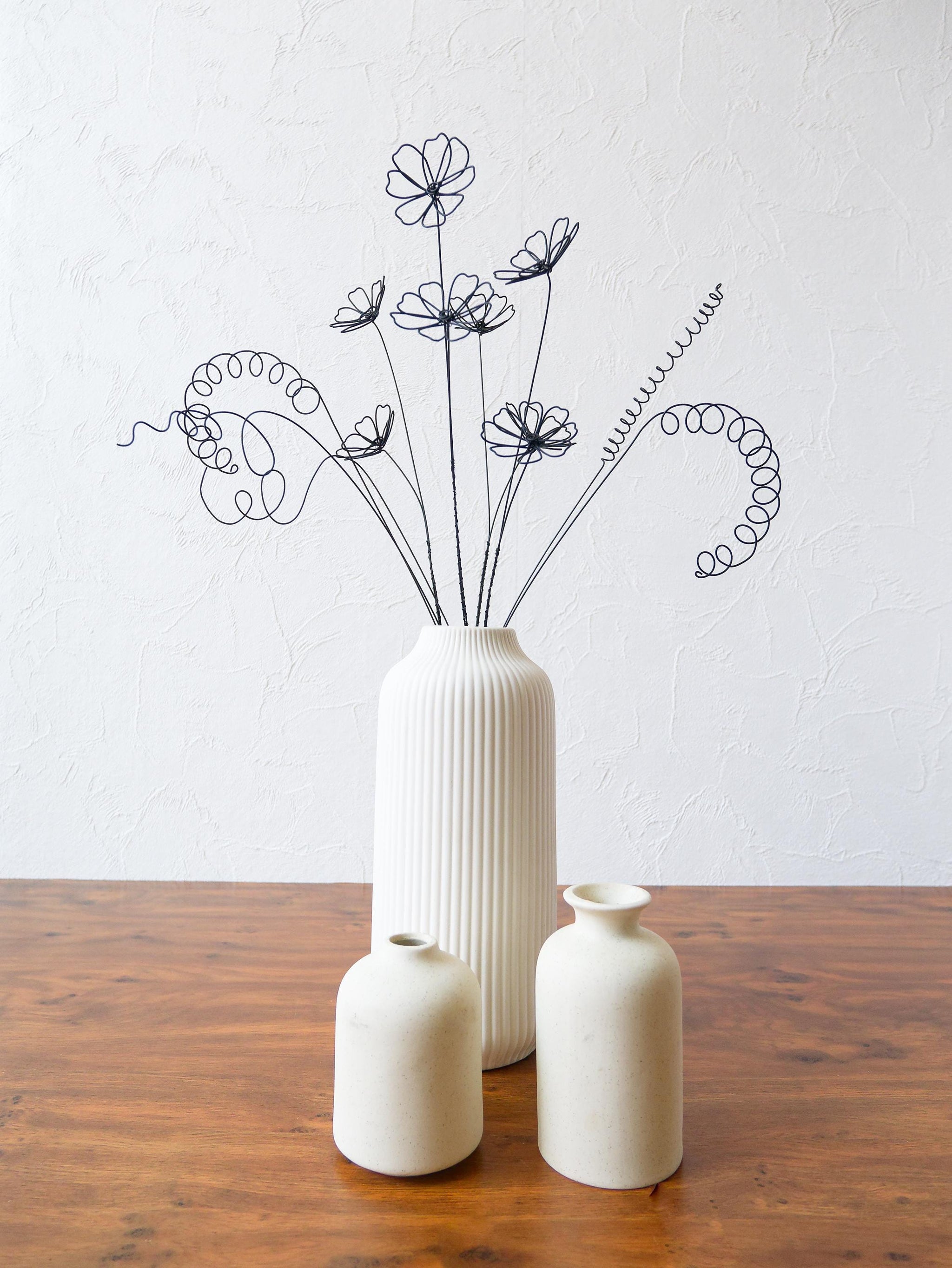 Bouquet de 9 fleurs éternelles en fil de fer recuit : Paquerette double, Herbes des champs. Déco florale moderne, décoration d'intérieur
