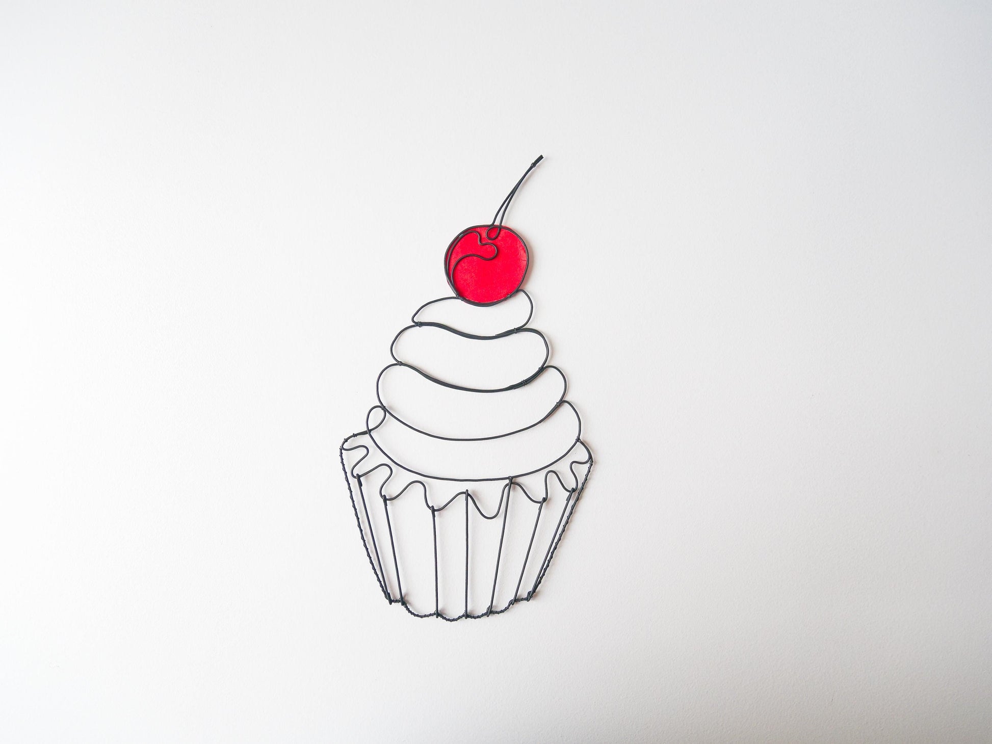 Cup cake en fil de fer recuit, décoration murale cuisine, décoration métallique, art food, gâteau, pâtisserie, cerise, french kitchen wire